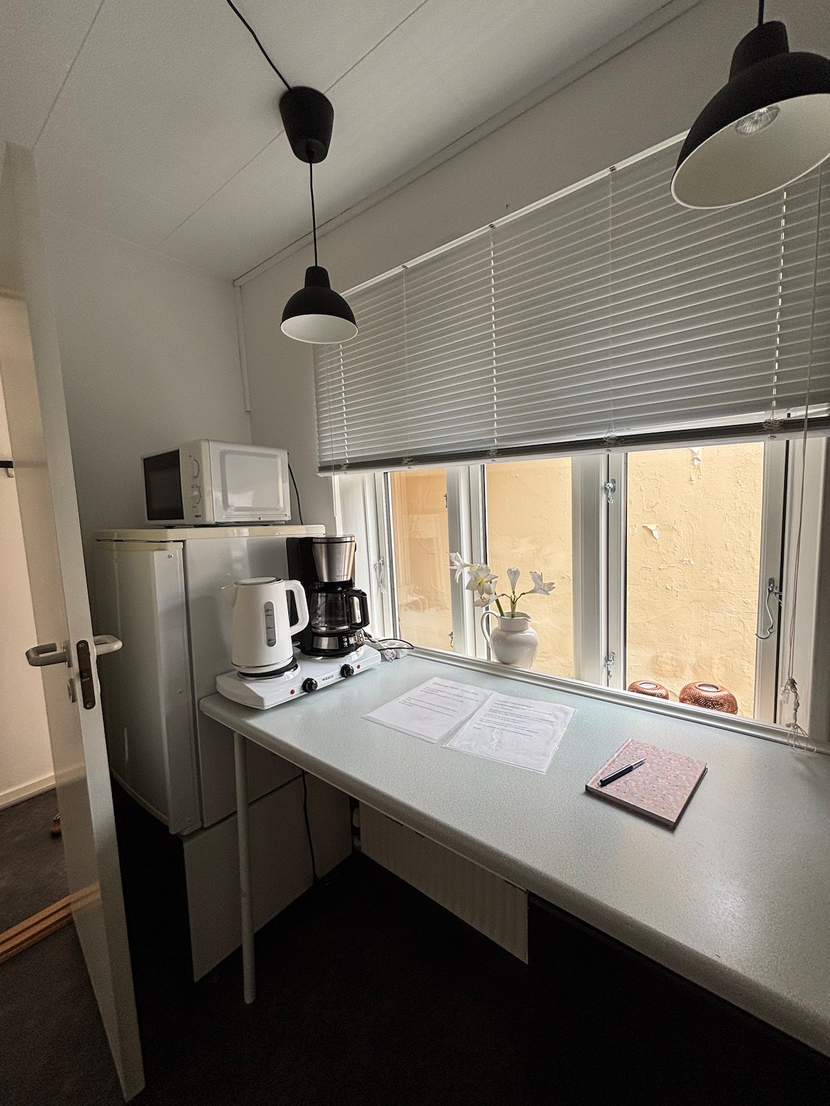 Nyd din ferie i et af vores 8 skønne tiny houses. Fra dobbeltsengen har du udsigt til fjorden og idylliske Bjerregård Havn. Du kan lave din egen morgenmad i det lille tekøkken med 2 kogeplader og køkkengrej, eller du kan bestille morgenmad ved os (mod en merpris) Nyd solopgangen med dampende varm kaffe til synet at tusindevis af trækfugle ved fuglereservatet Tipperne. Vil du til Vesterhavet er den kun 15 minutters gang væk. Sengelinned og håndklæder er inklusiv i prisen.