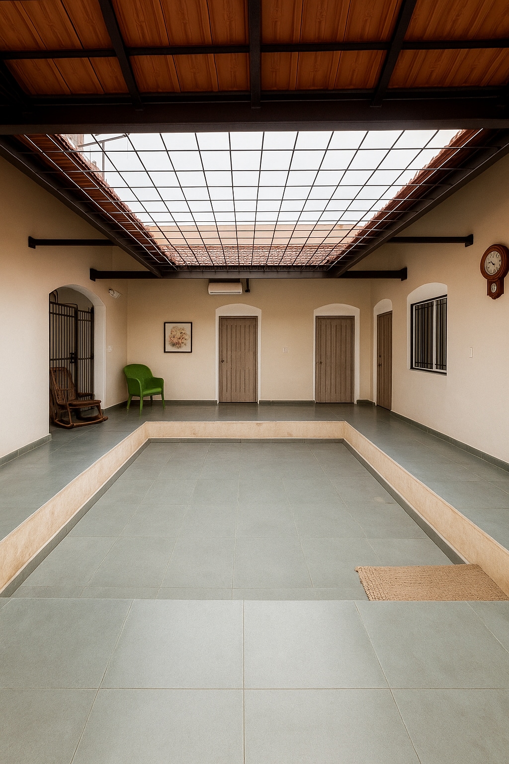 Welcome to The Heritage home – we’re happy to have you here! This is a peaceful and private 3BHK home, perfect for a family trip or work visit. The house is spacious (11,000 sq. ft.) and fully yours during the stay. Enjoy a small vegetable farm, a cozy sitting area outside, and lots of open space to relax or play. It’s a great spot to gather with cousins or friends, enjoy outdoor games, or even have a picnic. You can order food or groceries from Swiggy and Instamart.