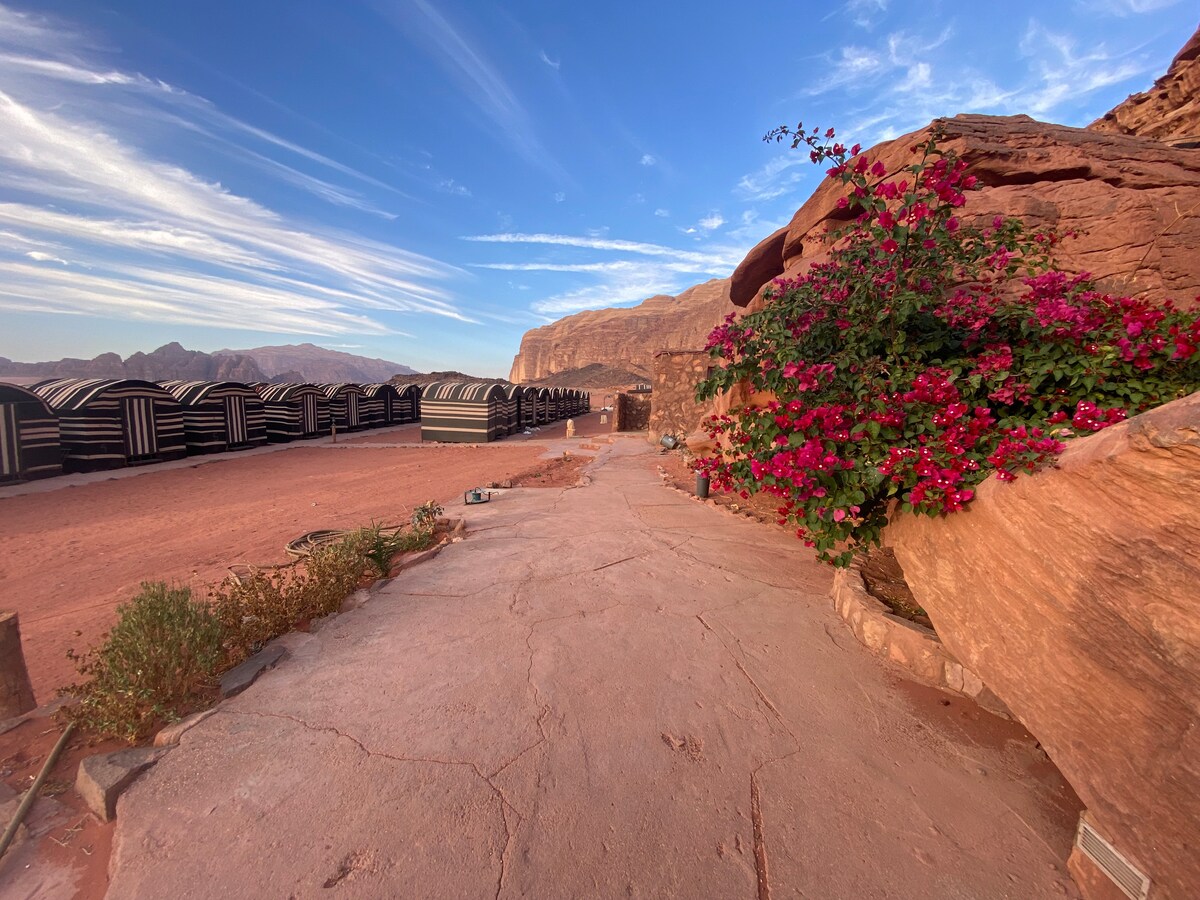 Desert Sands Camp is considered one of the most beautiful camps in Wadi Rum. It features eighteen luxurious tents with stunning sunset views. The camp is situated within the film-making zone and has been crafted to preserve authentic Arab heritage, in contrast to most camps that are often crowded and bustling. Uniquely, the camp boasts a high terrace where visitors can quietly contemplate the desert. Opposite the camp, the films Star Wars and Aladdin were produced.