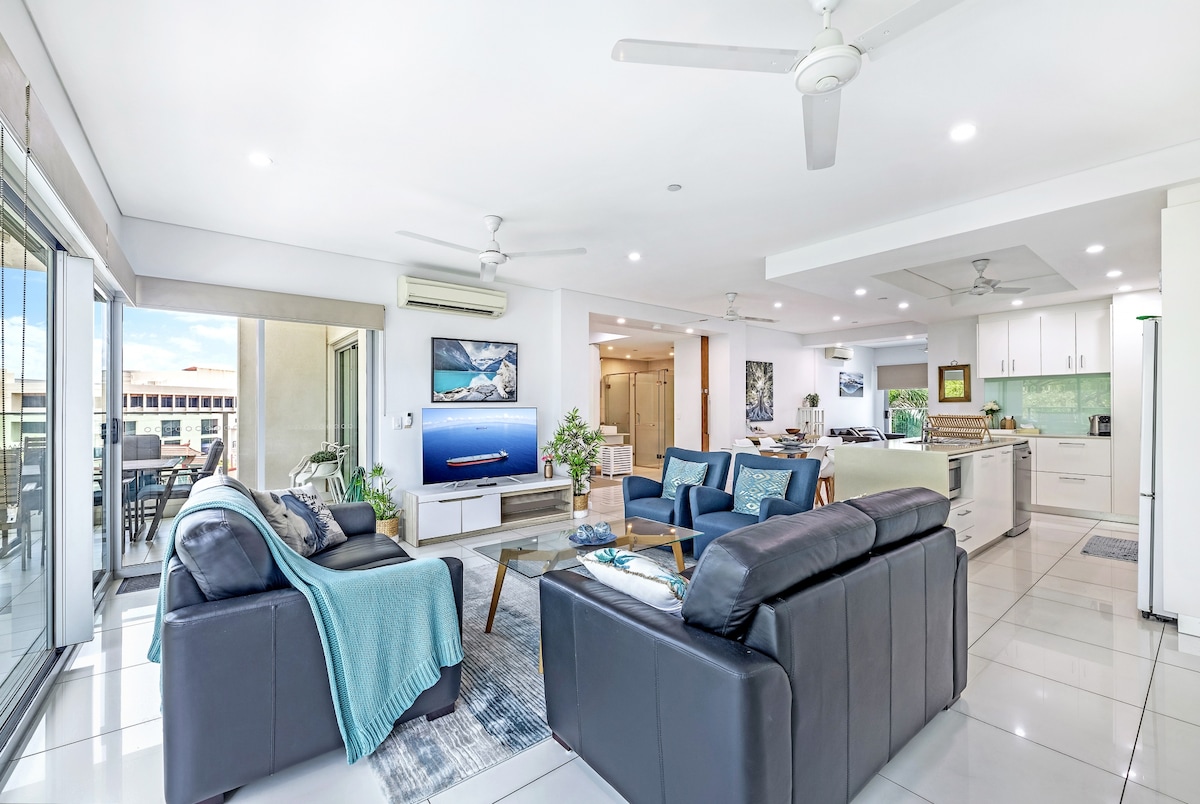 ☞ Pool ☞ Balcony w/ Harbor views ☞ Spacious and Comfortable 168 m² ☞ 2 Bedrooms w/ ensuite ☞ King & Queen beds ☞ Parking (onsite, 2 cars) 5✭“Robert’s place is a gem of an apartment. It has absolutely everything you need” ☞ 92 Mbps wifi ☞ Smart TV 55inch ☞ Fully equipped + stocked kitchen ☞ Self check-in ☞ Luggage storage available ☞ Washer + dryer ☞ Aircon 》Dynamic pricing - apartment for cost of hotel room 》20 Mins to airport 》Walking distance to The Mall, Casino, Cullen Bay & Mindle Markets