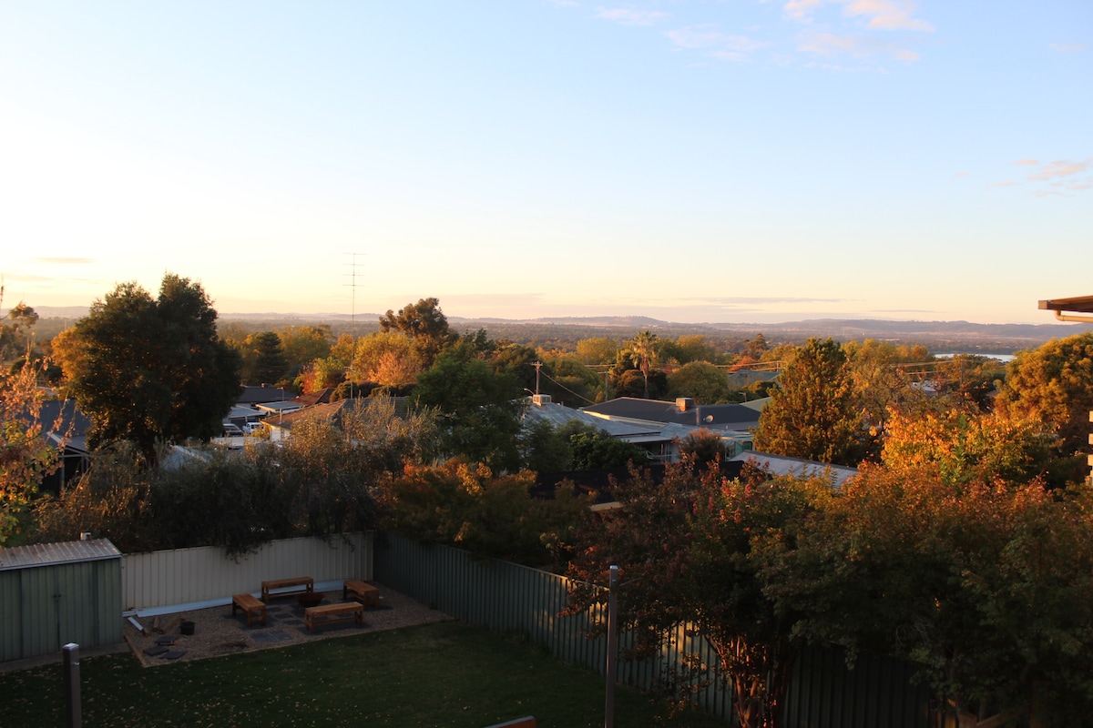 Amazing treetop views over Kooringal. Entire self-contained three-bedroom guesthouse situated on the top floor of a two storey home. Below is a separate Airbnb. Walking distance to Kooringal Mall including Woolworths, post office, pharmacy, cafes and restaurants. Yours to enjoy: - Free wifi - Free access to Netflix - Large backyard with entertaining area and fire pit - Free firewood