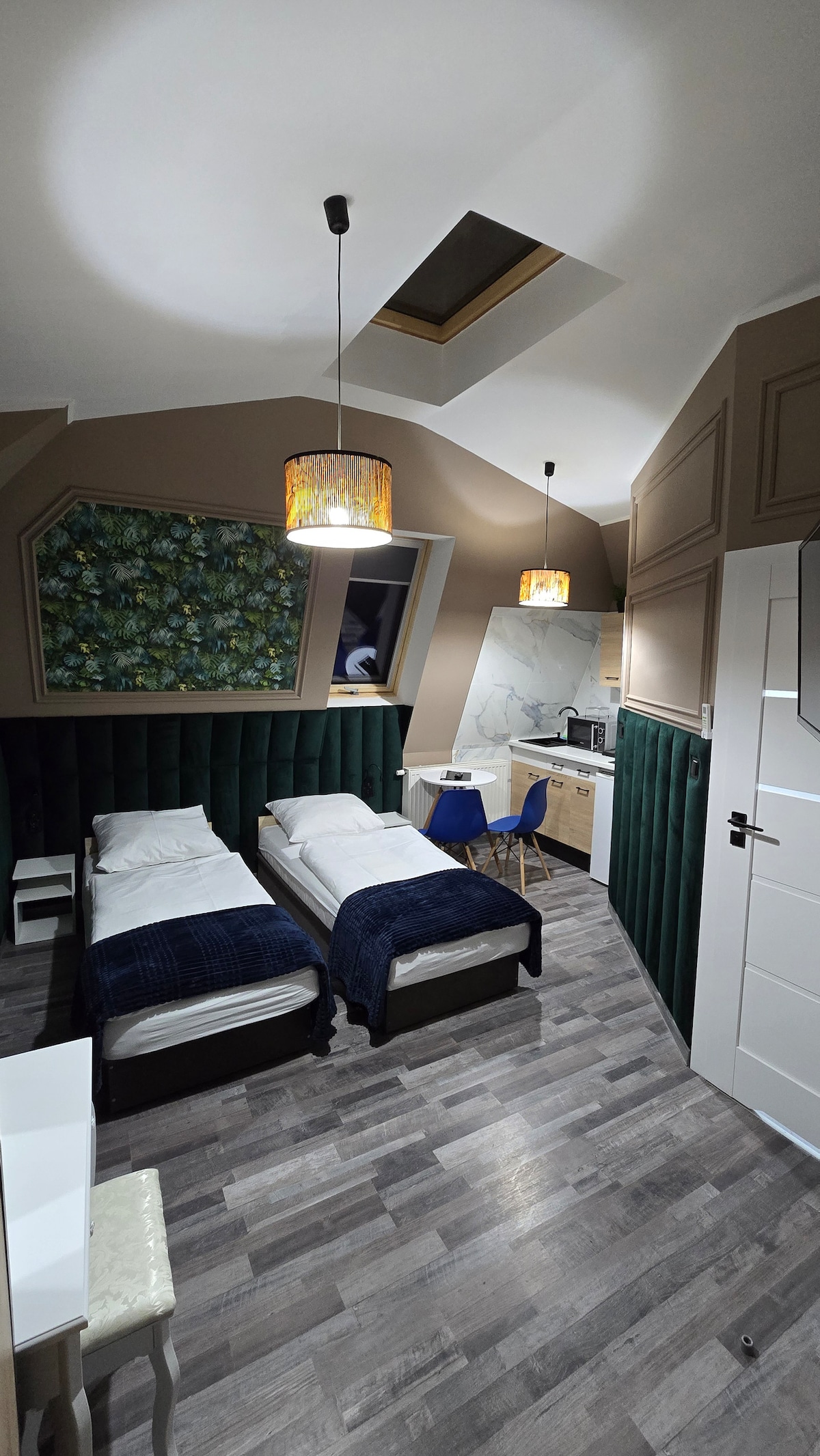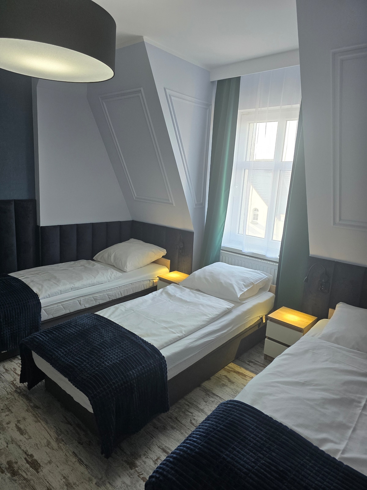 Apartament dwupokojowy 56m2 z balkonem na I kondygnacji .Oddzielne wejście. Sypialnia z TV, dwa łóżka pojedyncze które można zestawić. Duży pokój z TV, łóżko 2-osobowe Salon: łóżko narożnikowe+ łóżko pojedncze ( w komodzie) + dwa łóżka pojedyncze z możliwością zestawienie. Obydwa pokoje klimatyzowane. Kuchnia w pełni wyposażona wraz ze zmywarką . W łazience pralka, żelazko. W apartamencie WiFi. Bezpłatny parking.