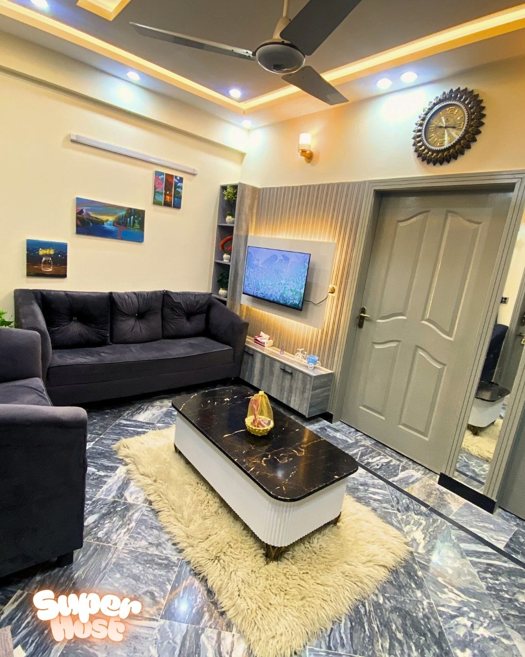 When you walk in this appartment the first reaction you will have is that its a beautiful,elegant and clean appartment. Family environment available. The building is surrounded with a beautiful park aswell. -15 minutes from airport 🛫 -2 mins from( Tandoori restaurant, chai que) - 2 minutes from Haneef medical hospital 🏥 - basement of the building has Mart - Helper also available who will service and clean your room, deliver you anything you need, take your clothes to laundry etc.