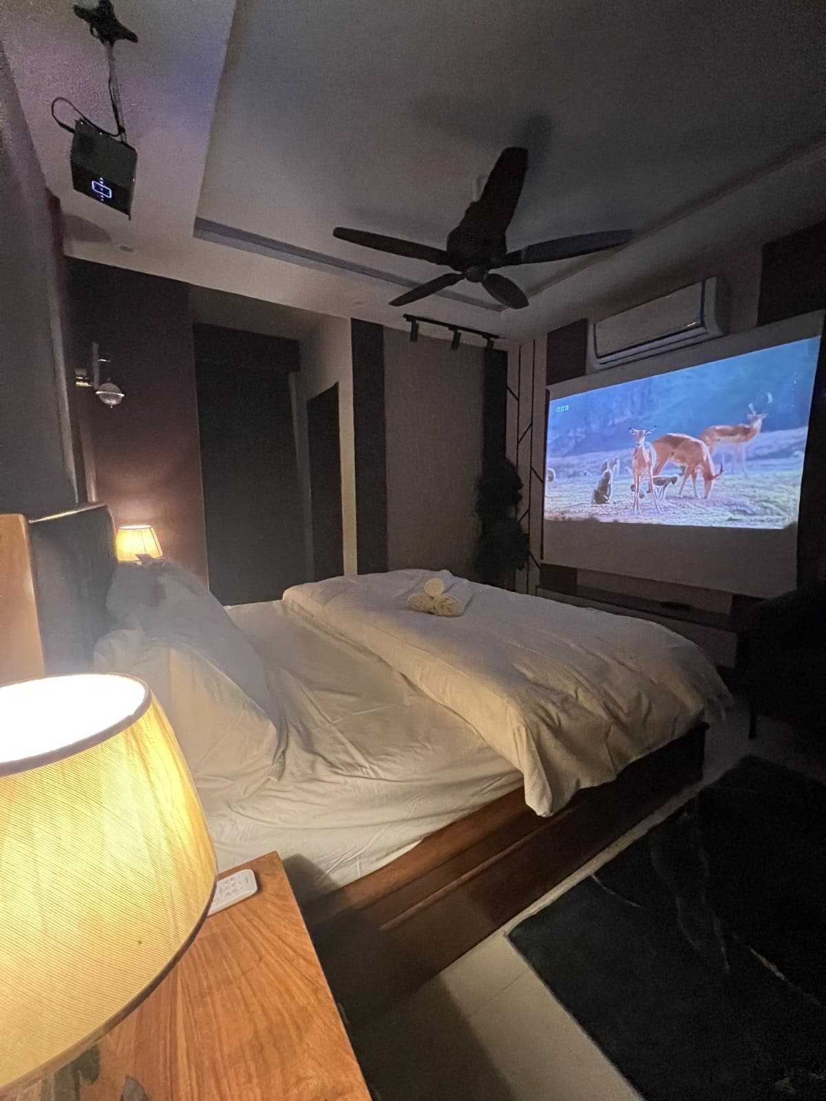 A stylish designer suite located on the 4th floor in the heart of Islamabad, just steps from F-11 Markaz. Bright, airy, and thoughtfully furnished, the space offers a perfect blend of comfort and elegance. Ideal for travellers with a cozy bedroom, modern kitchenette, and secure surroundings. Enjoy easy access to top cafes, restaurants, and shops, all within walking distance. Note: “Strictly only for families, unmarried couples/parties are not allowed” One vehicle parking is allowed