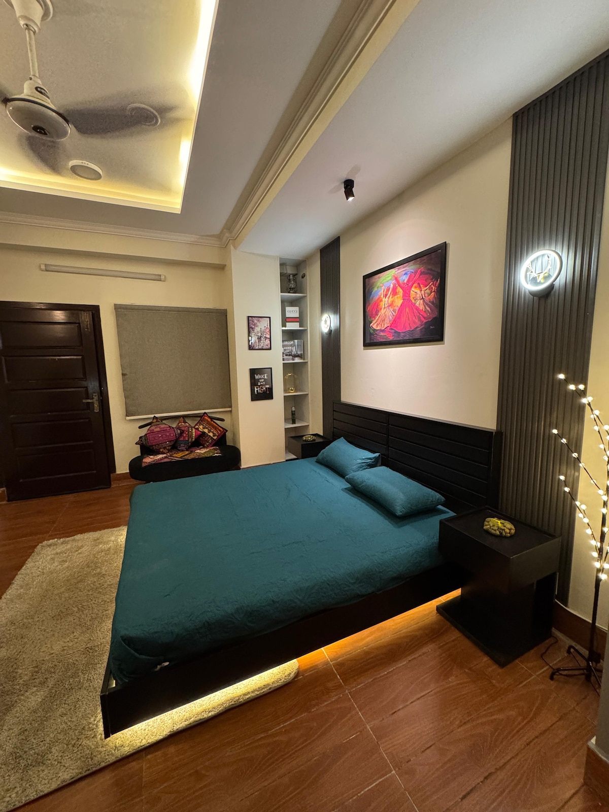 A stylish designer suite located on the 4th floor in the heart of Islamabad, just steps from F-11 Markaz. Bright, airy, and thoughtfully furnished, the space offers a perfect blend of comfort and elegance. Ideal for travellers with a cozy bedroom, modern kitchenette, and secure surroundings. Enjoy easy access to top cafes, restaurants, and shops, all within walking distance. Note: “Strictly only for families, unmarried couples/parties are not allowed” One vehicle parking is allowed