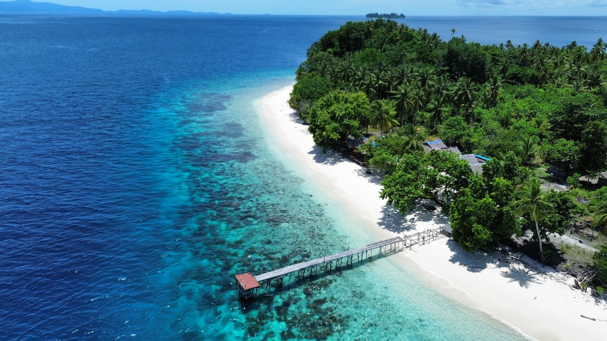 Bersantai di tempat liburan unik dan tenteram ini. Guesthouse ini berada di sebuah Pulau tersendiri yang sangat indah dan di kelilingi pasir putih yang bersih serta ada banyak pohon kelapa kemudian anda bisa melihat matahari terbit secara langsung ketika bangun tidur dan anda juga akan di bangunkan oleh kicauan burung serta desiran ombak kecil yang menjadi alarm anda. Di sini anda bisa langsung berenang atau snorkeling di pinggir pantai dan menikmati keindahan alam bawah laut Raja Ampat.