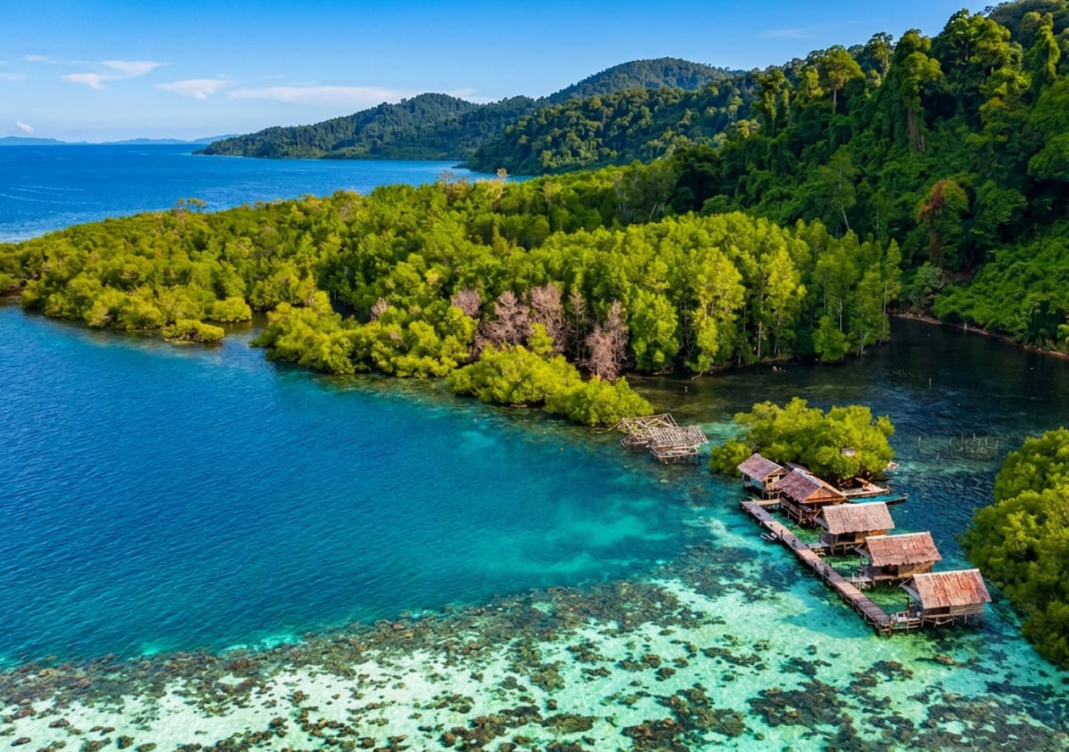 Menjauh dari segalanya saat menginap di Raja ampat Blue sea. Vila ini menawarkan 5 unit rumah ,dimana rumah ini di bangun pada alam hutan manggrove di sebuah desa kecil (Swainggrai ), Setiap rumah dapat menampung 2-4 orang,terdapat 2 kasur,tempat tidur malas,meja kerja ,tempat tidur gantung dan toillet,sangat baik untuk privasi keluarga.