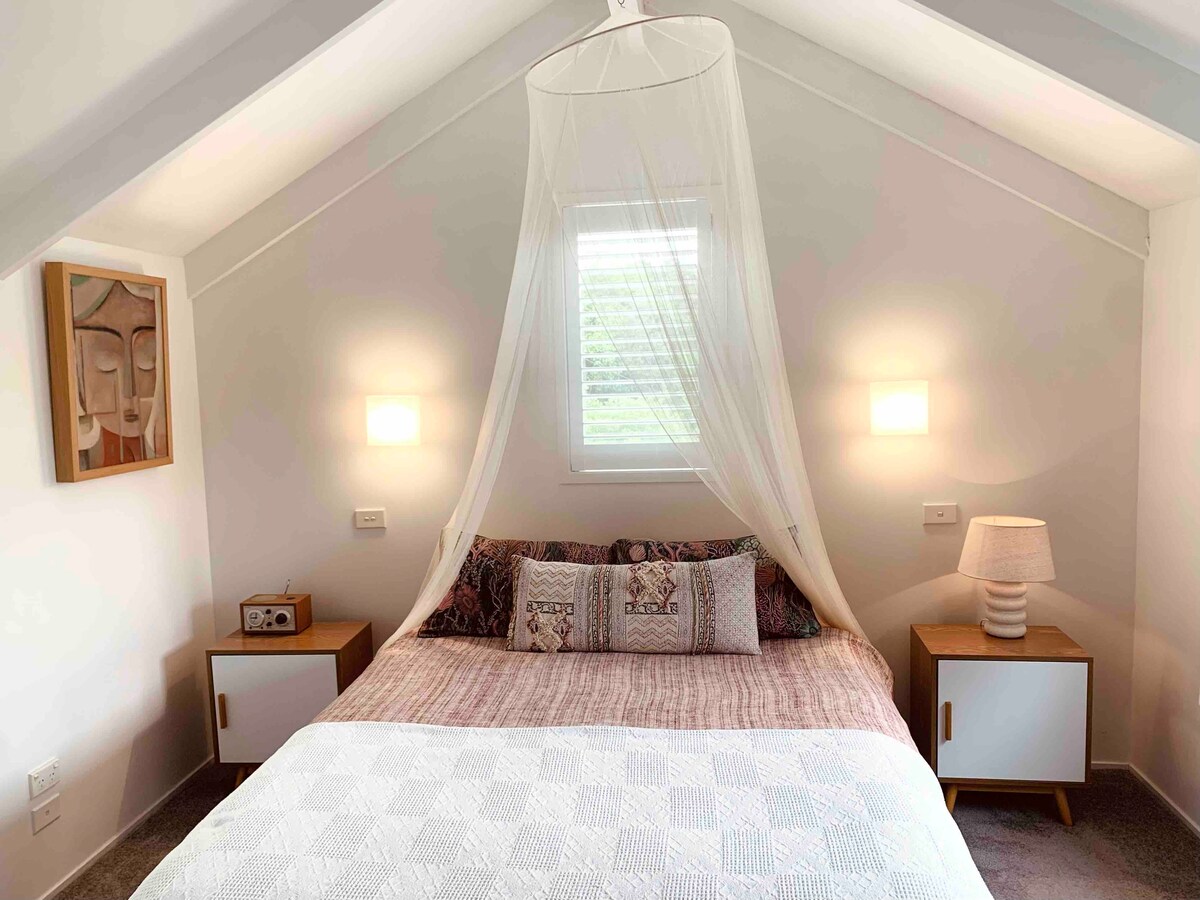 Romantic, private and comfortable, the Artist’s Gatehouse is perfectly suited for your short Waiheke break. The main wedding venues and most of the island’s wineries are within easy striking distance. Overlooking Oneroa village and with a peak of the sea, the Gatehouse is a short stroll to beautiful Little Oneroa beach. It’s an easy 10 minute walk to Oneroa's cafes, shops, bars and beach.