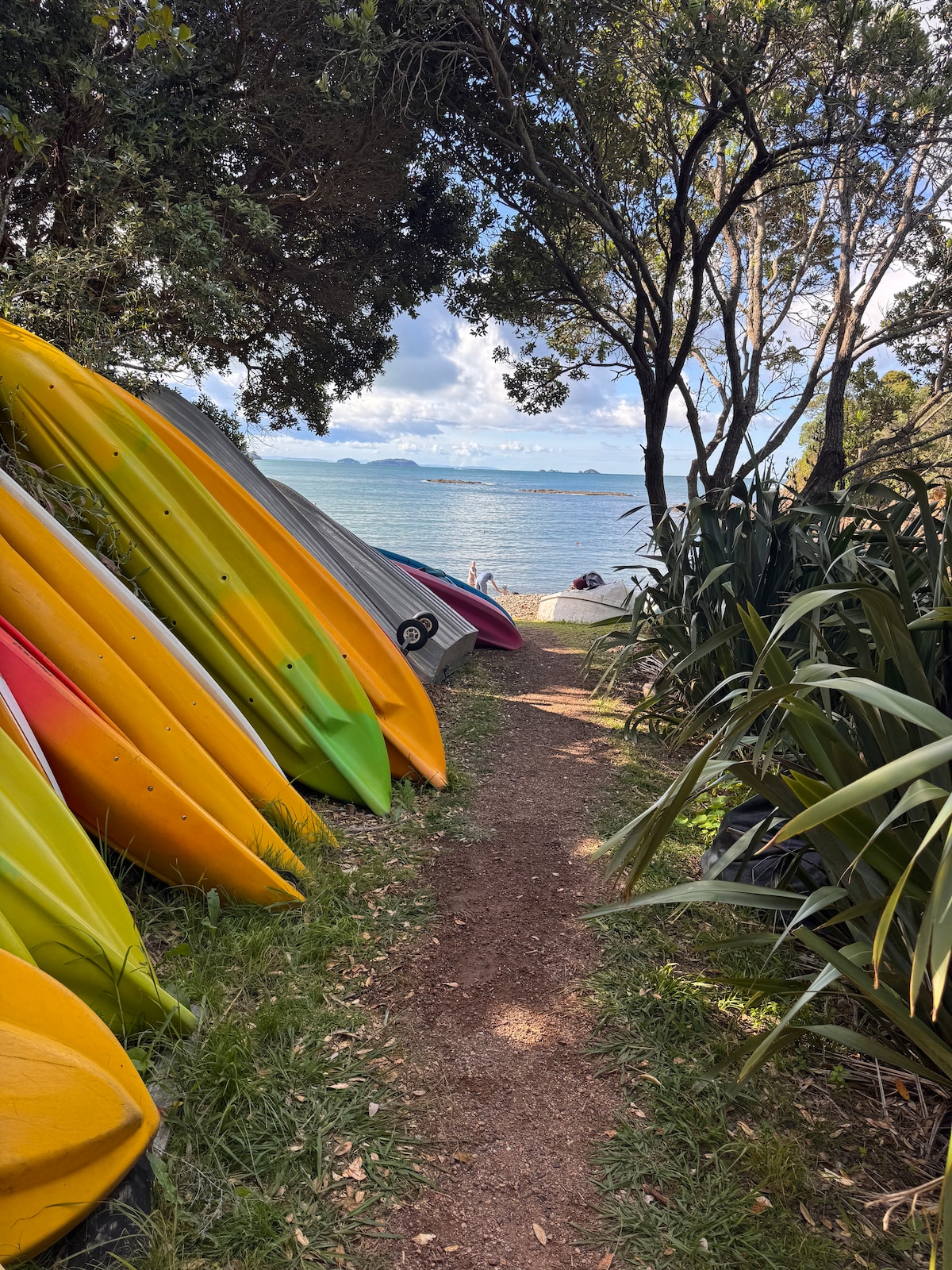 Our waterfront accommodation is a great place to relax and unwind conveniently located overlooking the picturesque Putiki Bay. Sit on the deck and watch the sunset across the bay. The bay is a tidal and is a great spot for kayaking, paddle-boarding and swimming at high tide. With private waterfront views, the cottage is in with in easy reach of the islands beaches and local amenities, with the Ostend market and supermarket only 10 min walk.