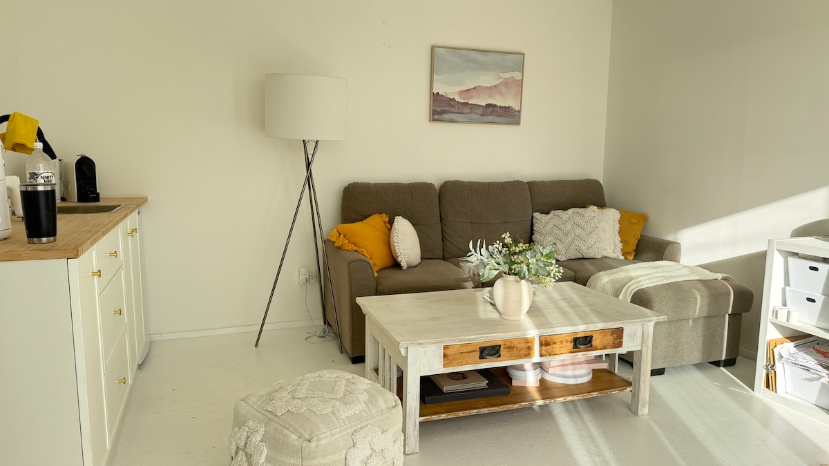 Enjoy Scandi-designed furnishings, seaviews, and lush surroundings. The wrap-around deck leads to dual terraces to watch the sunset or enjoy a bbq. A 10-min walk to Rocky Bay Beach, and the local Community Hall serves coffee and cake on the weekends. Our home has 2 separate bedrooms and one bathroom. 15-20 min drive to ferry. Furry friends are negotiable. No parties! Please note there is a studio apartment downstairs that can be rented as well. See other listing.