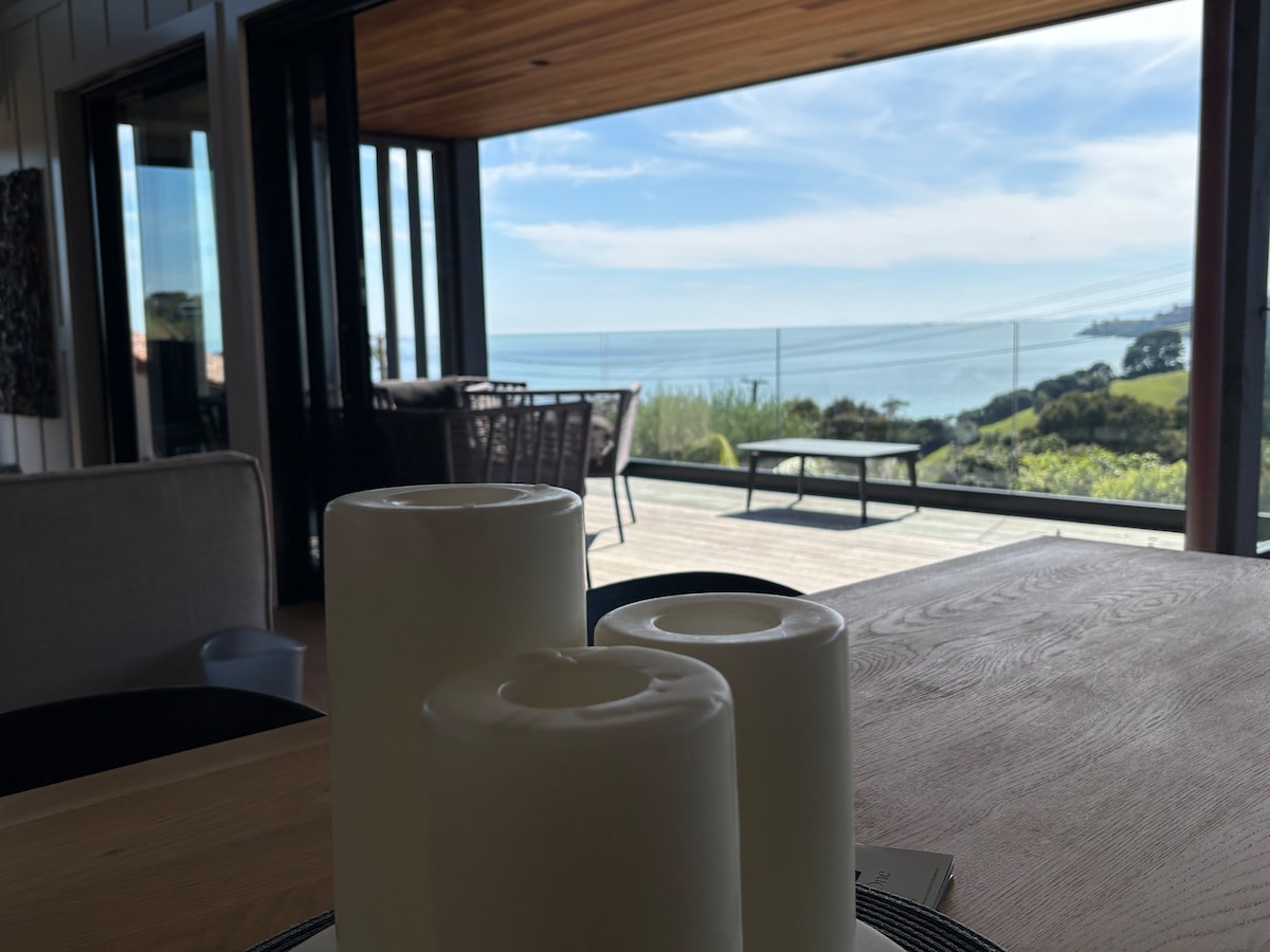 Centrally located, but blissfully peaceful. Perched above Surfdale Beach, you are meters away from the water, with cafes and scenic walks at your fingertips. Approximate half hour walk to Oneroa, one of Waiheke’s main centers, offering cafes, shops, restaurants, beaches and access to public transport. Approximately 3km from Kennedy Point ferry terminal. Perfect location, without the hustle and bustle. Relax and restore at our tranquil home.