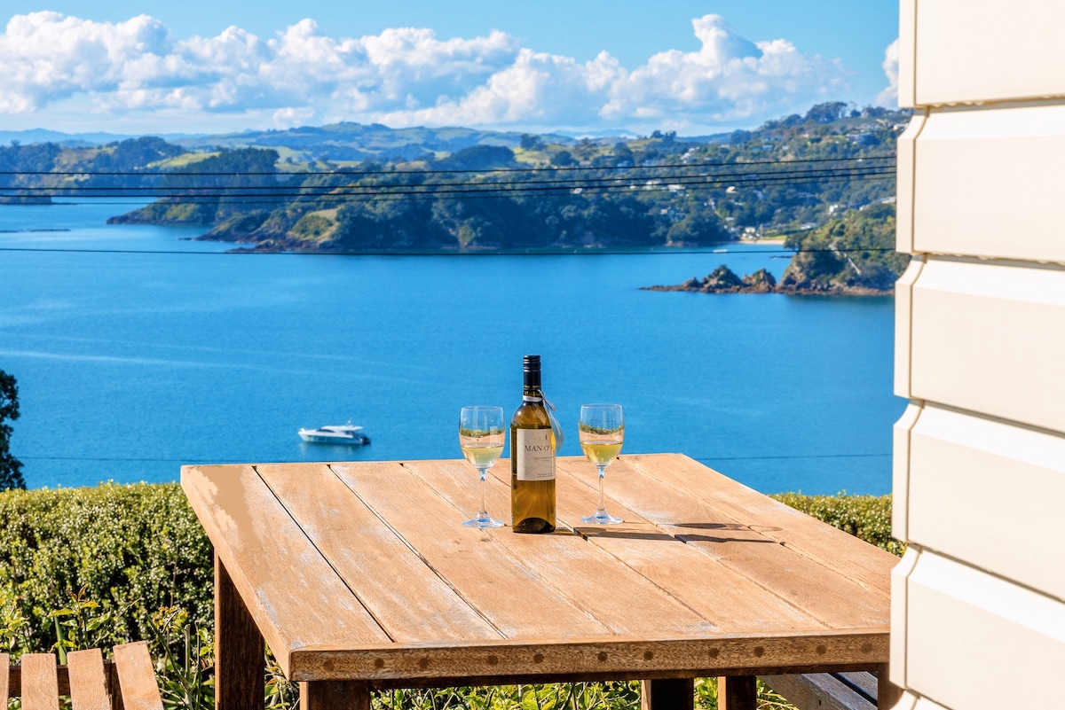 Waiheke Island度假村,宽敞海景,露台,私人!