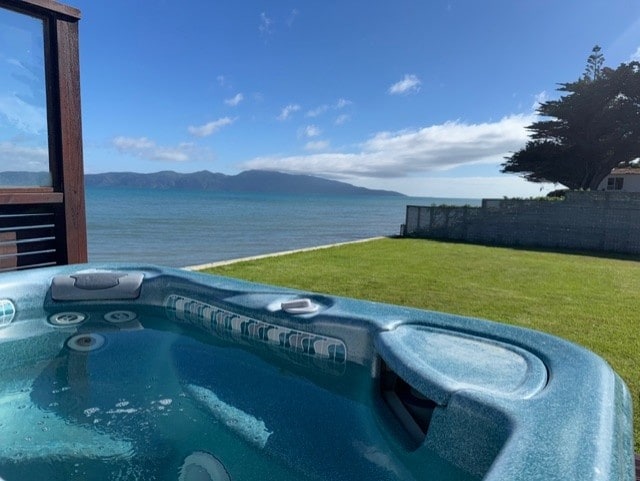 Luxury, one of a kind beach front accomodation Breathe, relax and marvel at the expansive views of the ocean on your doorstep and majestic Kapiti Island. Close the door and its your own private getaway. Watch the moonlit ocean and stars on the horizon. Perhaps this just is heaven ! Enjoy this haven with someone you love, or take the solitude, and space to escape This studio has its own walk in shower with rain head and a private spa for your exclusive use.