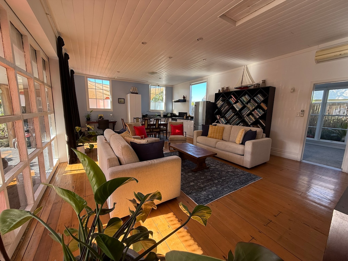 Our sunny No Smoking 2 large sunny bedrooms apartment with kitchenette is located in a quiet suburban area, with tui in the garden. It is attached to our 100 year old home, but is completely self contained. There are outdoor areas for you, tv with chromecast available, games. Bus and train are close by. Polished wooden floors, eco cleaning products, full sanitising. Breakfast is included in the price - Homemade muesli, bread and yoghurt, spreads, tea and coffee.