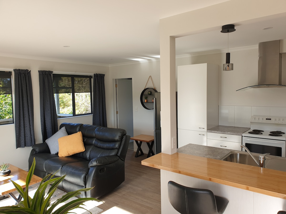 Situated next to the Village and a 5 minute walk to the Beach, this modern comfy 1 bedroom unit has all you need for 1 or 2 guests. Fully equipped kitchen with dishwasher. Lazy boy couch, heat pump & TV with freeview/chrome cast. Comfy queen size bed. Separate toilet. Bathroom is supplied with bath towels, toiletries & washing machine. Weekday prices are reflected due to construction next door - hours are 8am-4pm Mon to Fri.