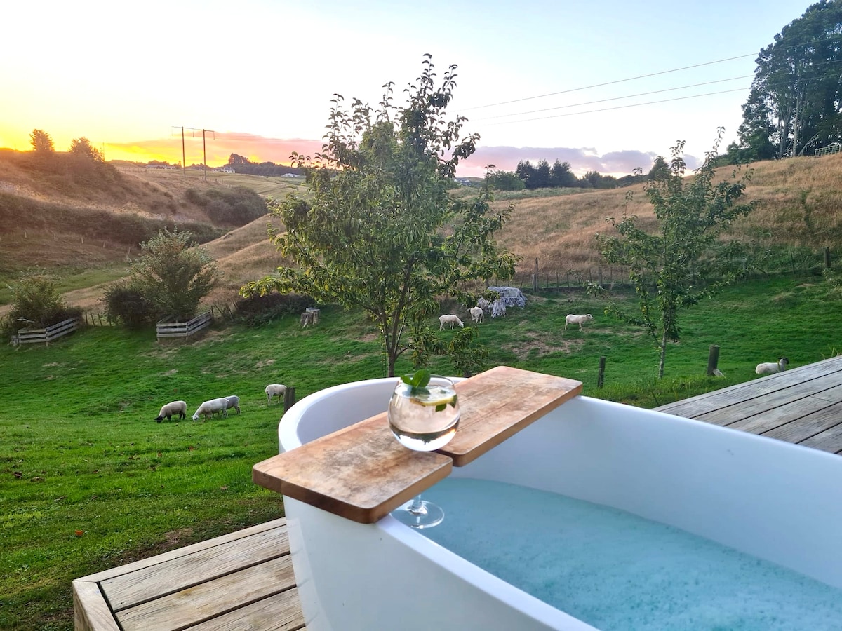 The Hilly House is a hillside property in the heart of the Whitehall district, surrounded by beautiful rural views. Very private. Outdoor baths for relaxing in peace, star gazing with a glass of wine or two. Our friendly and inquisitive llamas will come over to greet you, you can fine their pellets inside the house. There are many lovely walks nearby. Blue Springs in Putaruru, 40 mins. Sanctuary Mt Maungatautari, 35 mins and 10 mins from Lake Karapiro and Cambridge with amazing eateries.