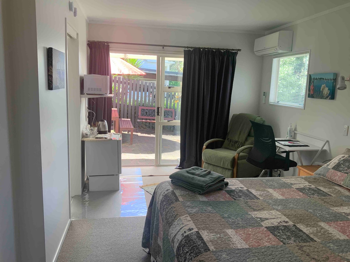 A Spacious attractive Studio with private bathroom ensuite. Separate secure entry, self contained. Modern, light and sunny. Suitable for 1 or 2 people. The Red Door is very well situated for exploring the Coromandel ranges, towns and beaches, the Hauraki Rail Trail & Karangahake Gorge Adjacent to the Thames Golf Course. Perfect for Work stays, golfers & travellers STRICTLY Non Smokers, Non Vapers No rec. drugs Just over one hour's drive from Auckland airport and 1.5 hrs from 3 cities