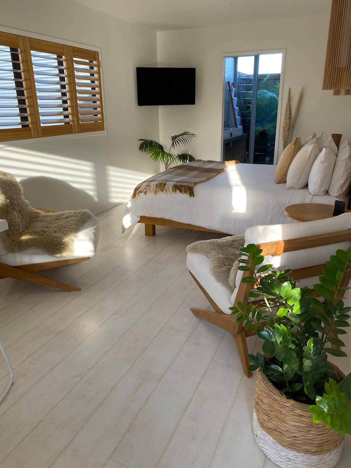 Welcome to The Orchard Guesthouse. We’ve created a space that blends the comforts of home with the thoughtful touches of a hotel. Nestled on an organic avocado orchard, this restful and spacious single-bedroom guesthouse is tastefully decorated and designed for relaxation. Whether you’re unwinding after a day of exploring or simply enjoying the peaceful surroundings, we hope you enjoy staying here as much as we’ve enjoyed creating it for you.