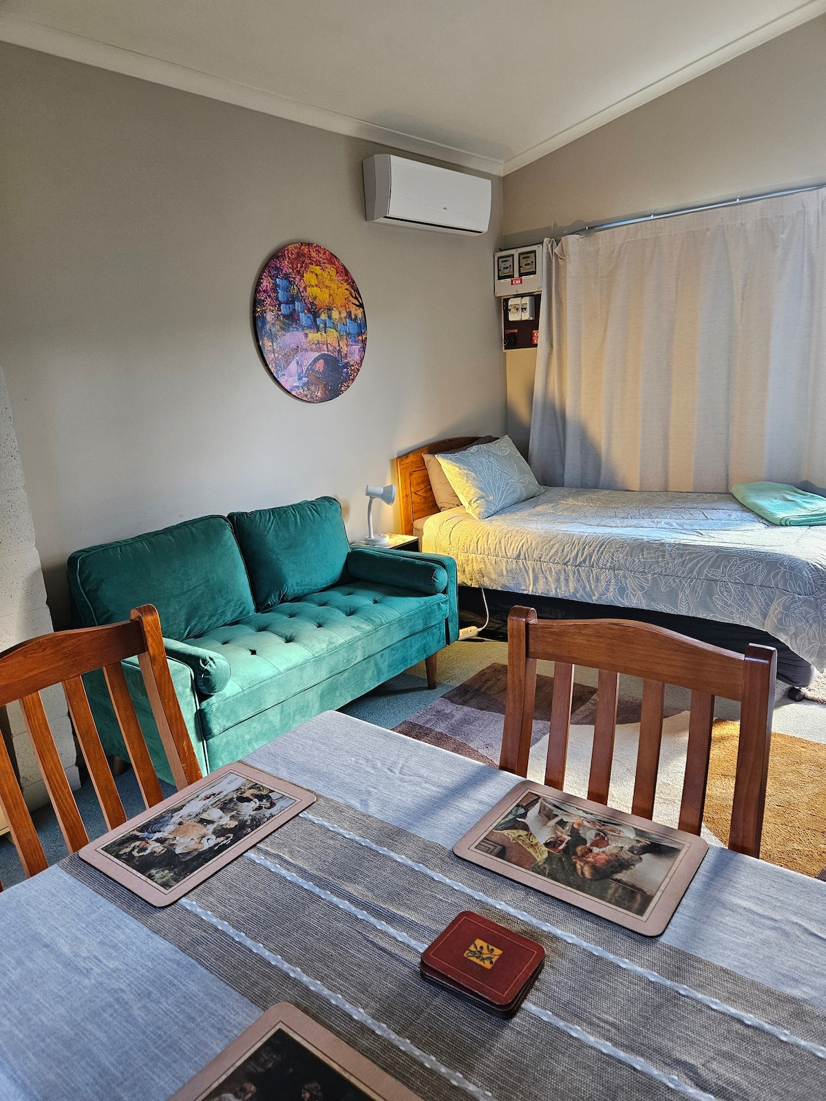 Your very own relaxing pool house. A standalone dwelling opening directly onto a fabulous swimming pool with a private veranda. - Spacious master bedroom with quality plush king bed - Comfortable living with queen sofa bed - Luxe Foxtrot linen - Nespresso, tea, salt, pepper - Plug in cooktop, toastie maker, microwave, airfryer - Bar fridge - Free Wifi - Smart TV - Swimming pool - Outdoor bean bags, sofa - Highchair/Porta cot on request - Playhouse and swings - Fruit orchard