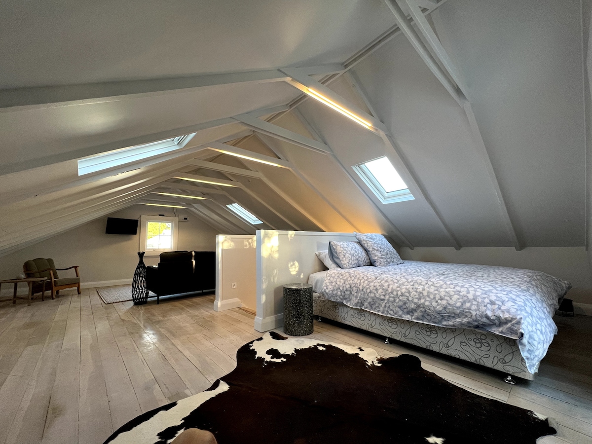 Relax in our sunny, fully renovated 109-year-old barn loft—rustic charm with modern comfort. Enjoy a comfy orthopaedic queen bed, spacious lounge with a sofa bed and heat pump, private bathroom, and a well-equipped kitchenette. Wake to birdsong, meet our friendly dog, cats, and hens. A peaceful “bit of country in the city” with off road parking. Close to supermarket & just 7 minutes from the CBD & express way to all parts of the city. Perfect for both business travellers and holiday makers.
