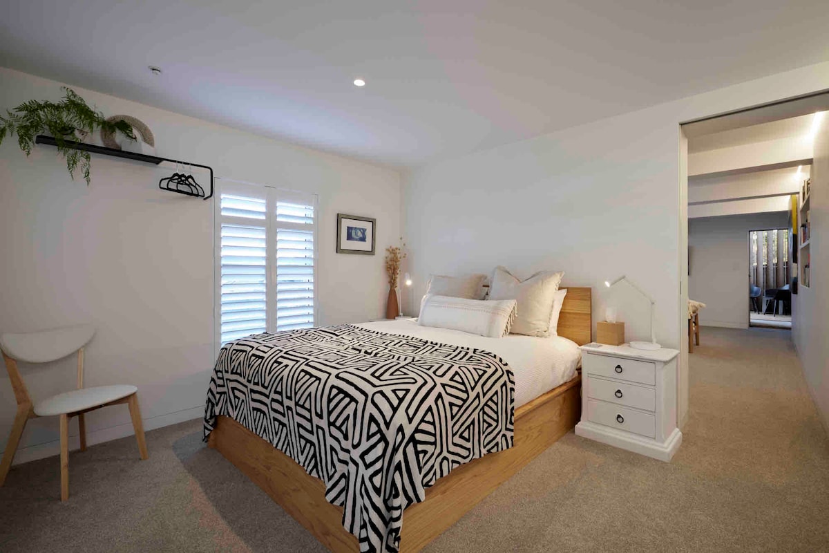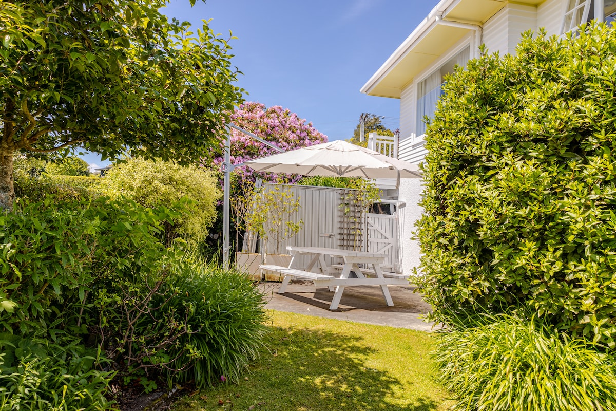Studio room (queen bed), bathroom, kitchen and separate entry. Two night minimum. Microwave and single induction element for cooking. We live in the rest of the house. Please check the photos to ensure that this suits. A 2 min walk to the surf beach and Tay St cafe serving breakfast, lunch and dinner. A 15 min walk to Downtown Mt shopping. Stroll the beach, climb the Mt, enjoy Pilot Bay.