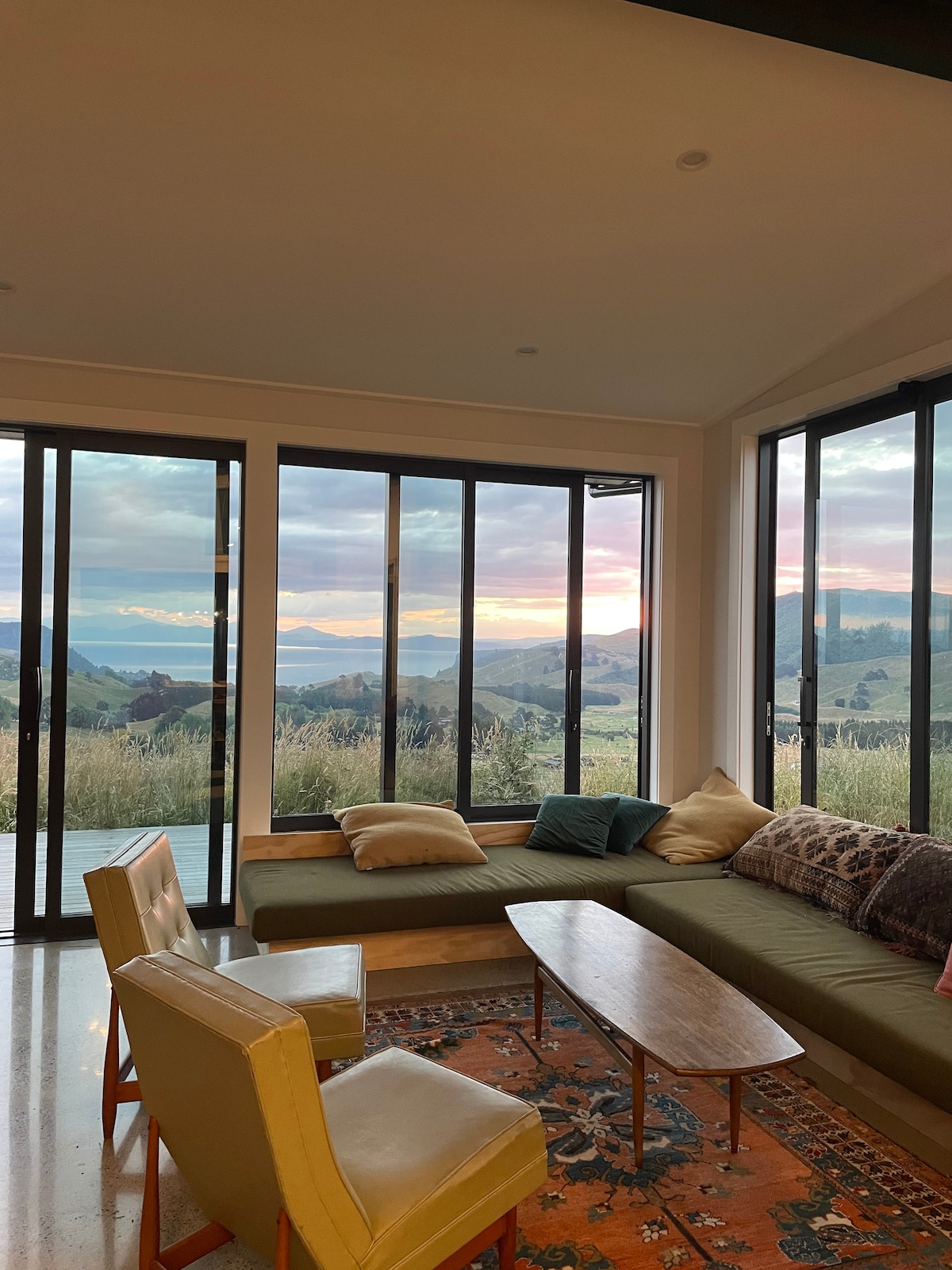 Our modern home is 15 minutes from Taupō yet feels like a private hideaway. Quiet and secluded, it looks out to Lake Taupō and Mount Ruapehu, with stunning sunsets. Ideal year-round, it has outdoor areas with BBQ, large windows and a double-sided fireplace. Whakaipo Bay is 5 minutes away for swimming or walking, with plenty of bush tracks nearby. Not suitable for children. Hairdryer, toiletries and iron not provided (sorry guests keep taking them and it’s to hard to constantly replace).
