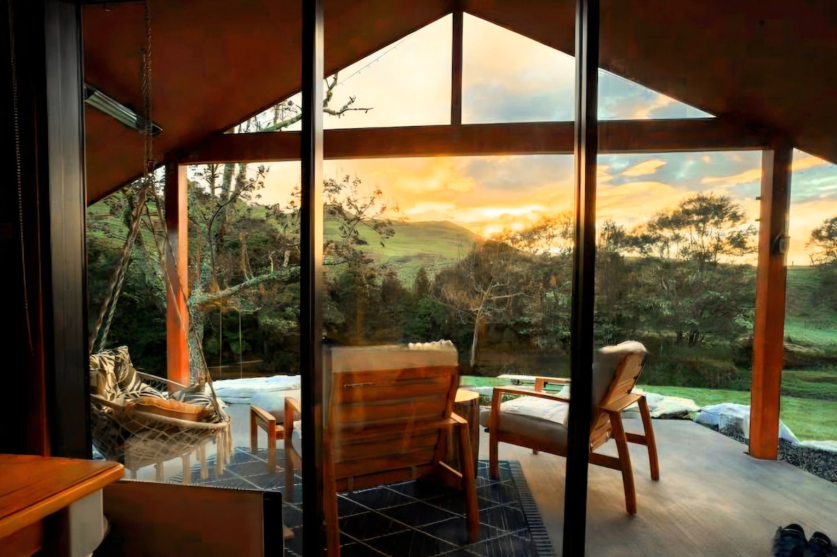 AirBNB Host Awards Winner 2024 - Best Nature Stay. Escape to your handcrafted cabin in the heart of a preserved remnant of native bush, with views of the rolling farmland and a peep of Mt. Karioi. You can sit in complete privacy, reconnect with nature, and enjoy a hot chocolate or a glass of wine as the Tui, Piwakawaka, and Kereru duck and dive around the trees. This is a unique style of accommodation - coming to stay here is a perfect getaway for those seeking relaxation and tranquility.