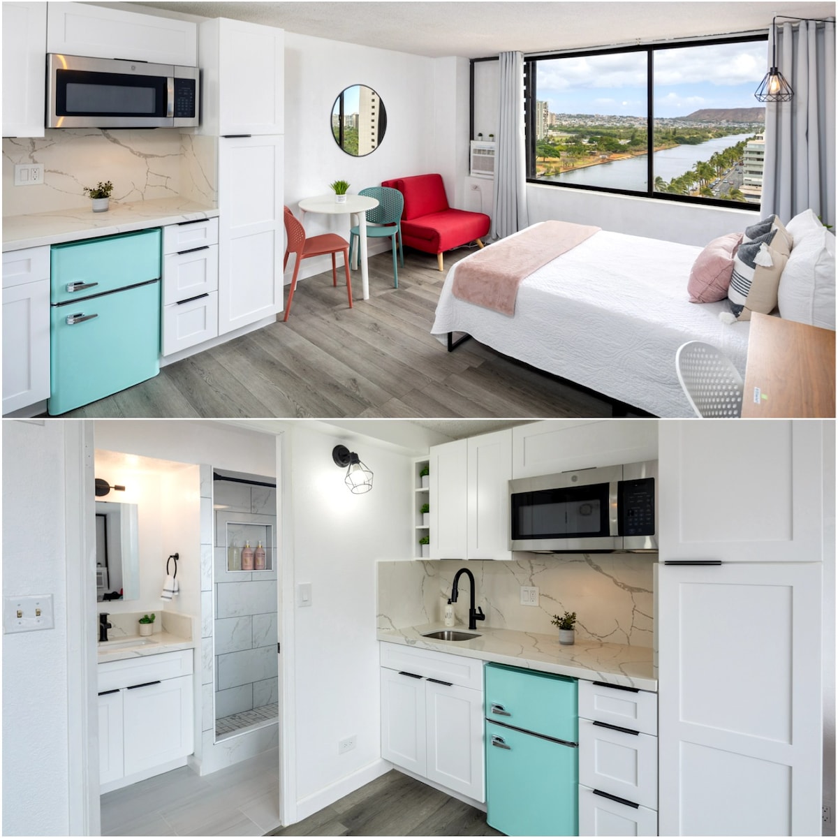 Your dream Waikiki getaway begins here! Enjoy panoramic views from our 26th-floor studio in the Hawaiian Monarch, featuring a king bed and views of the ocean, canal, and Diamond Head. The condo is remodeled with new amenities, including a kitchen, A/C, WiFi, and a flat-screen smart TV. After a day exploring O'ahu, unwind in comfort with ocean, sunset, and sunrise views. Just a short walk to the beach, shopping, restaurants, and more—this is your perfect vacation, and we can’t wait to host you!