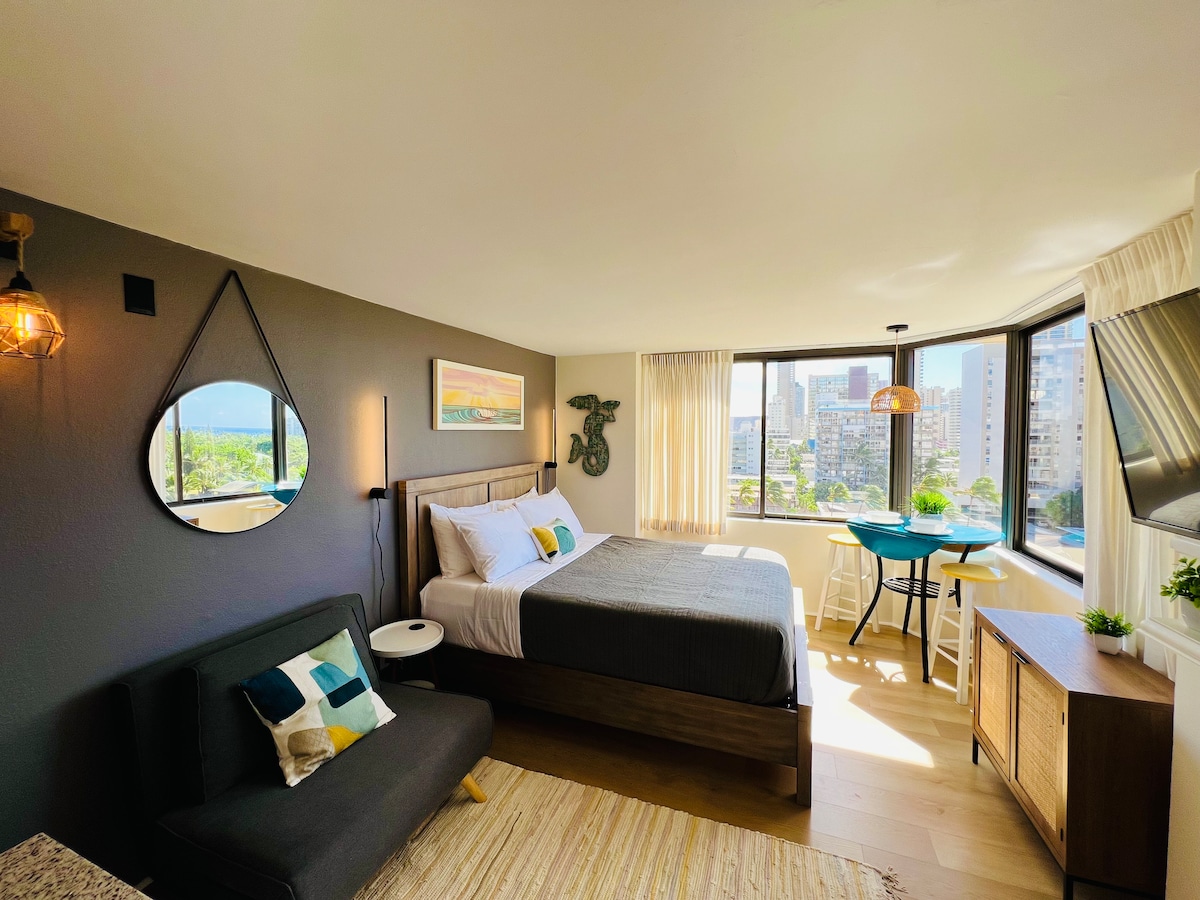 威基基海滩设计师单间公寓,欣赏迷人景色