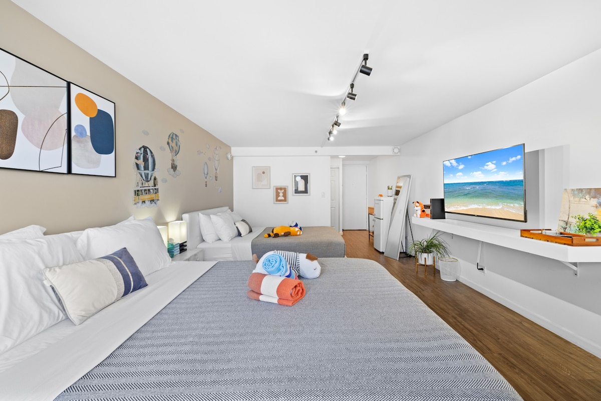 现代干净单间公寓,免费停车|步行至海滩