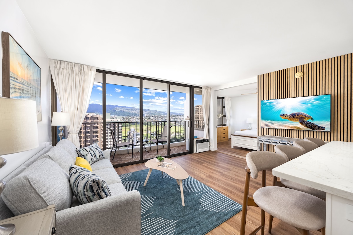 Enjoy breathtaking ocean views from the 43rd floor, overlooking the stunning Waikiki skyline! This beautifully renovated studio features modern, stylish décor, creating a cozy and inviting retreat. Located in the heart of Waikiki Beach, you’ll be surrounded by top restaurants, world-class shopping, and the iconic Waikiki Beach. Perfect for couples or small groups, this studio offers the perfect blend of comfort, convenience, and incredible scenery—your ultimate getaway in paradise!