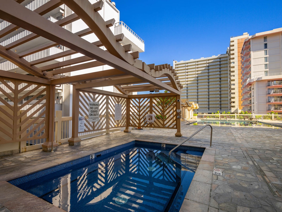 威基基中心地带,迷人的海景,1个免费停车位