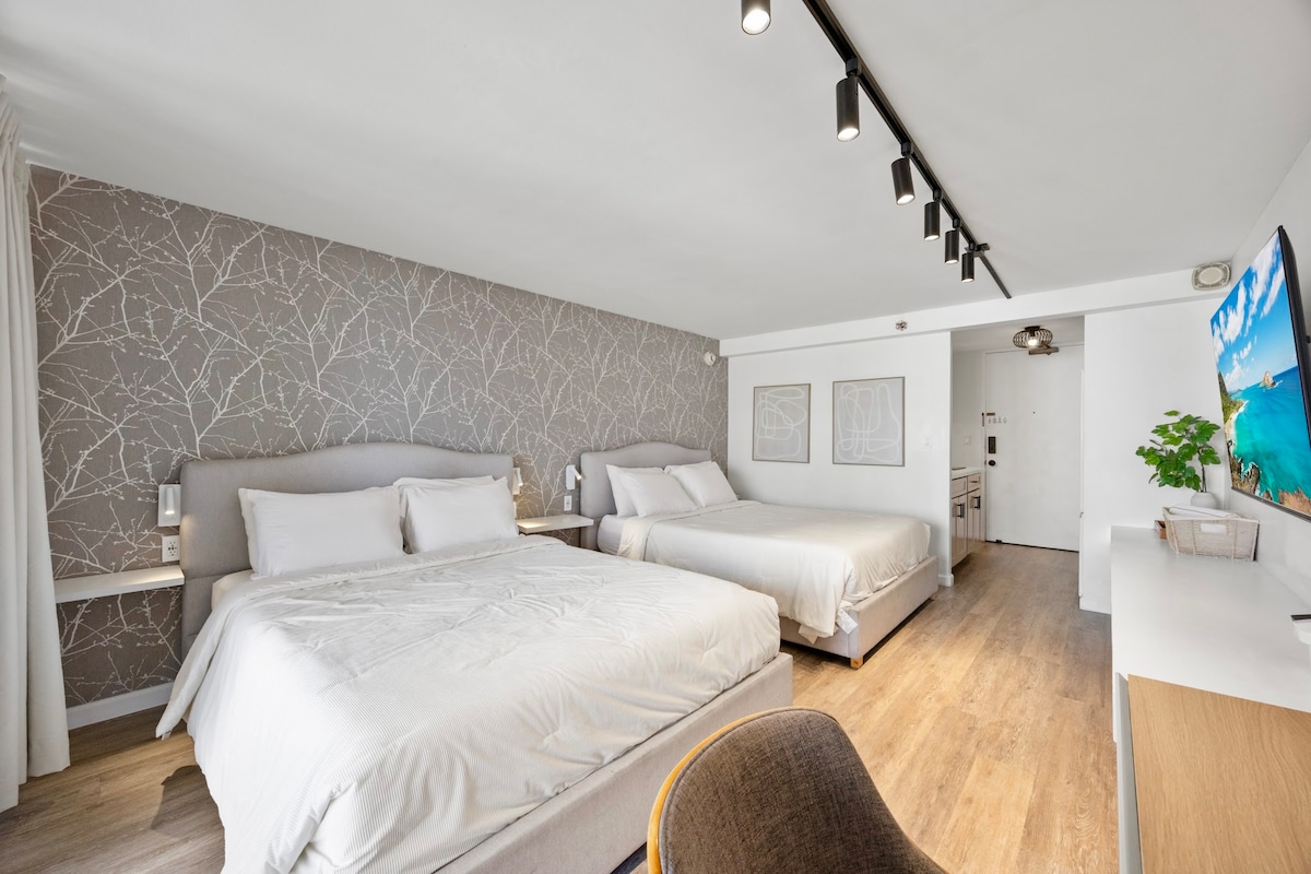 佛罗里达顶级时尚高档单间公寓,配有2张标准双人床,靠近海滩