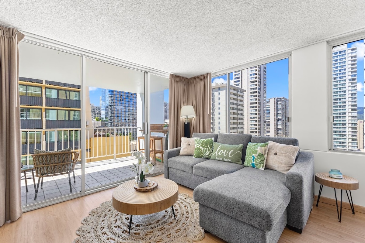 Welcome and Aloha- Recently renovated Gorgeous Mountain View A few minutes of a quick stroll Waikiki Beach,Shops and Restaurants. Find yourself situated on the 14floor, Whether you're traveling with family or a group of friends, you'll appreciate the spaciousness of the balcony, which includes a dining area, perfect for soaking in the stunning views. The building is situated in central Waikiki, with so much to see and do in the area, you'll be able to enjoy all that Waikiki has to offer.