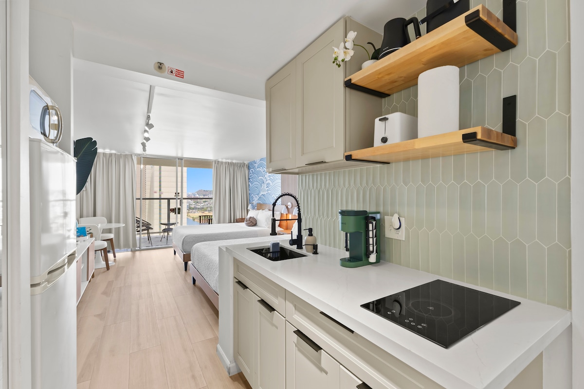 *现代海滩步行!翻新的威基基公寓*