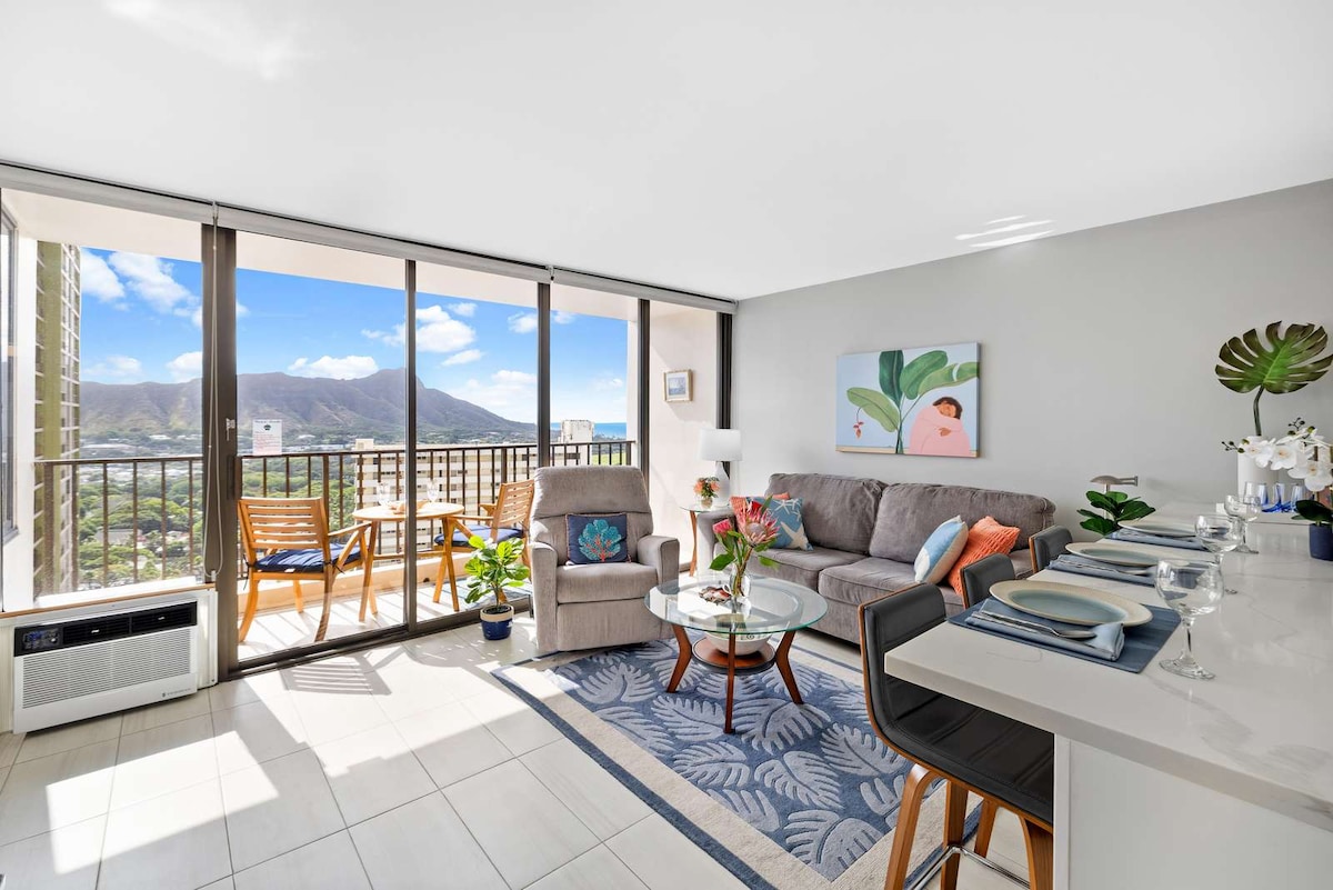 Aloha and welcome to one of the most amazing complete remodels you will find in Waikiki - completed end of 2022. This one-of-a-kind 1 bedroom with free 1 parking stall, pool and gym boasts spectacular ocean & Diamond Head views and is only 0.2 miles (5 min walk) from Waikiki Beach and closer to endless restaurants, shopping & so much more. We would love to have you stay with us and create memories in this truly magical place that is centrally-located, well appointed, and with fabulous views!
