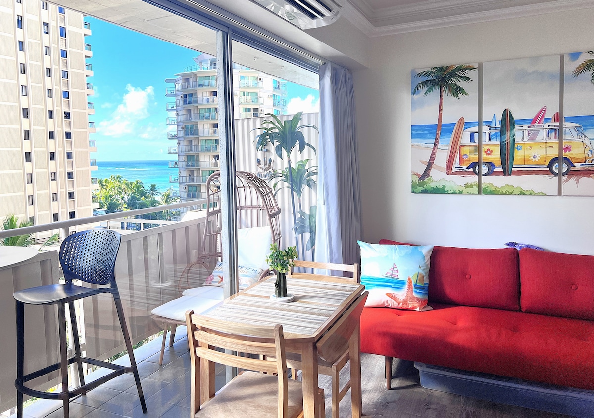 海景房•1卧室转角公寓•距离威基基海滩仅几步之遥