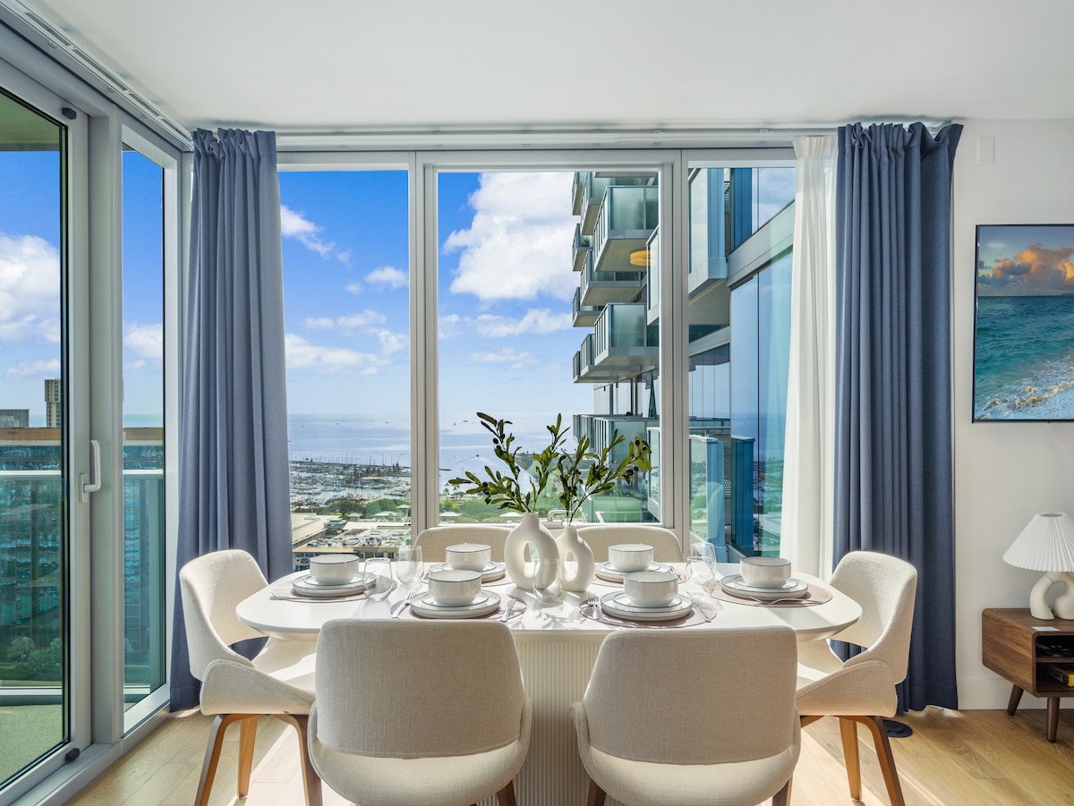 Newly renovated stunning condo unit at the Ilikai hotel is fully equipped with everything you will need for the perfect stay. All new appliances, furniture, flat screen TV's, leather pull out sofa, modern design, bidets, AC, Xbox, Wifi and more. 2 bedrooms, 2 full baths, 1 free parking, 2 balconies, 4 beds, 8 guests. This spacious 1,000 sq ft unit is centrally located making restaurants, shopping and beaches all within walking distance. This is truly the perfect space for an unforgettable trip.