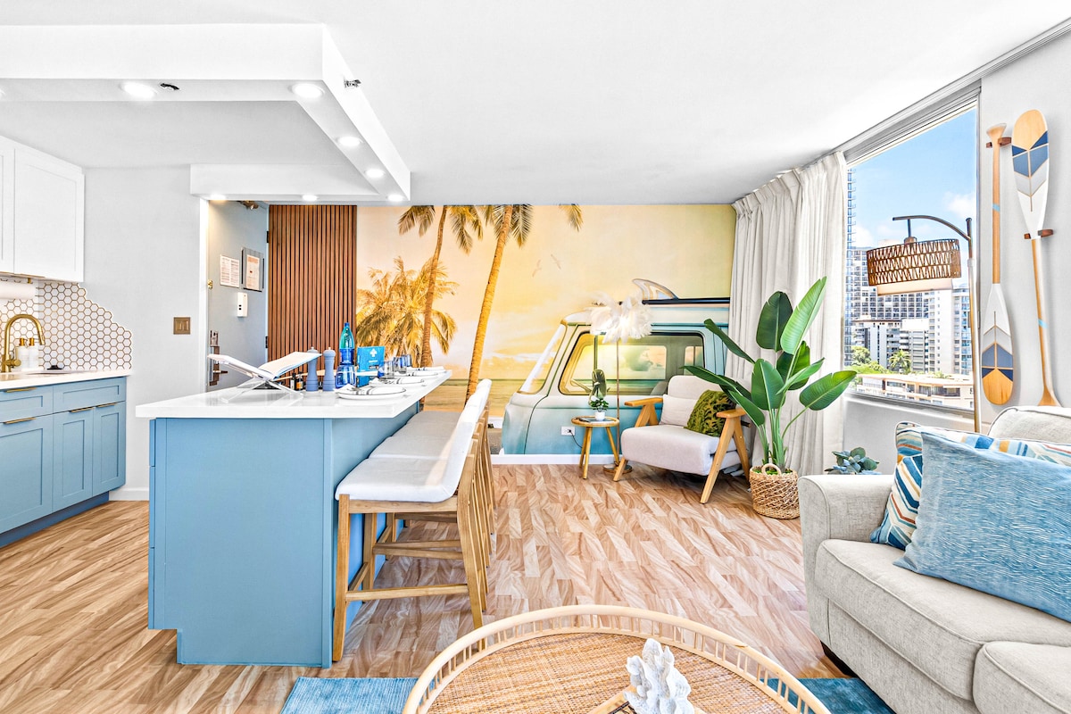 23楼-威基基中世纪现代风格,带停车位