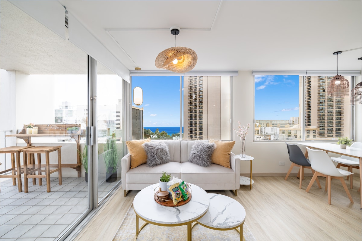 威基基中心地带,迷人的海景,1个免费停车位