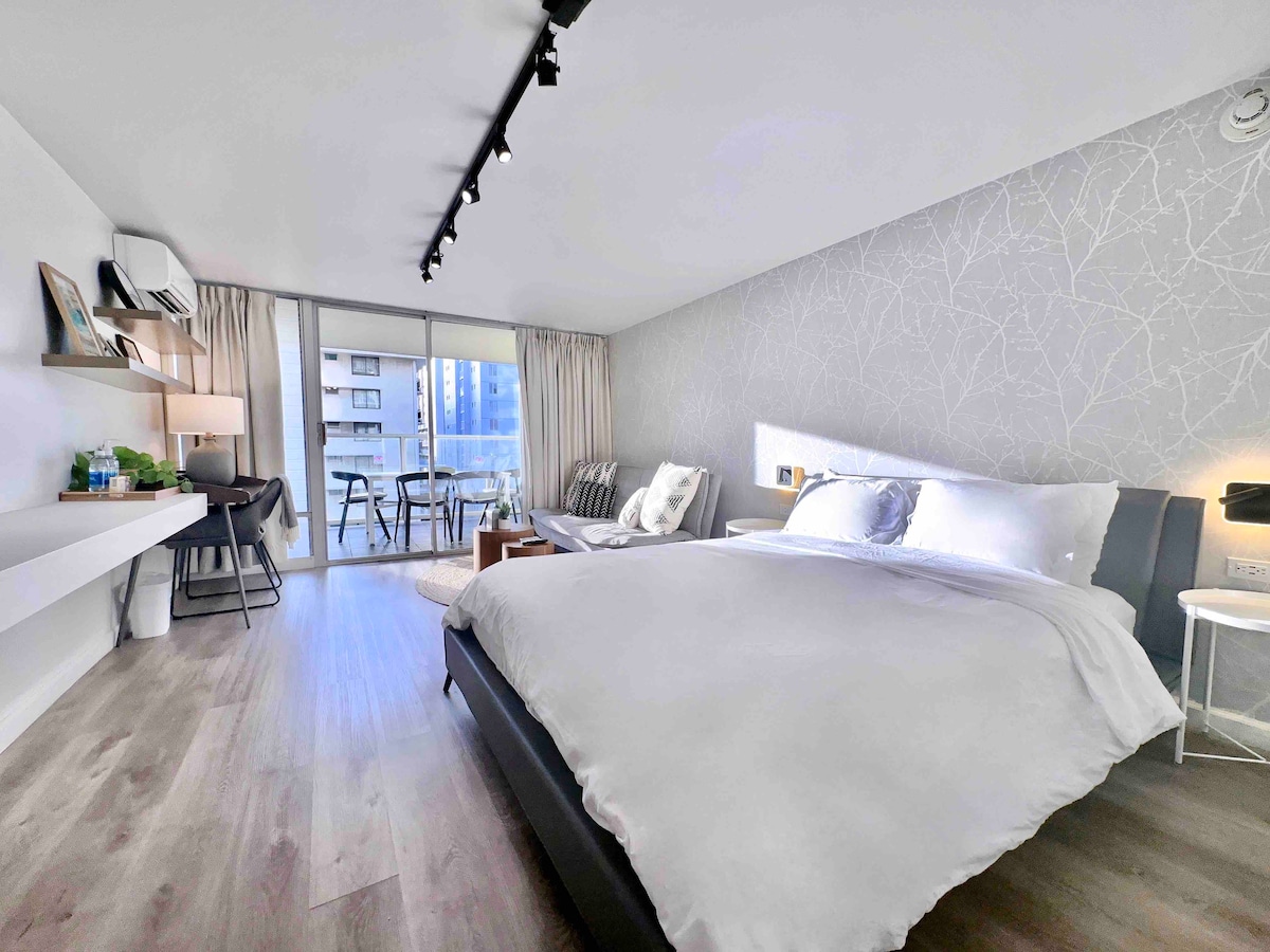 现代时尚标准双人床单间公寓-怀基基中心~