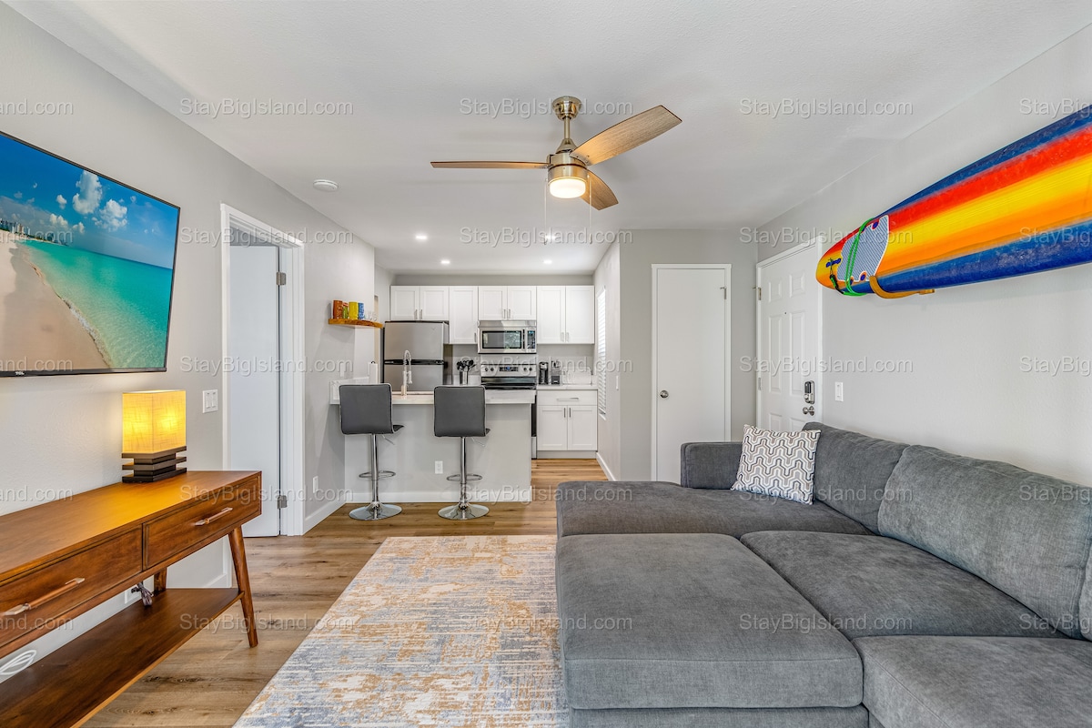 Aloha and thank you for considering our home for your visit to the Big Island of Hawaii. Our recently remodeled 2bd/2bath home is walking distance from Shopping (Kings/ Queens Shops), Dining, Entertainment, A’ Bay Beach, Historic Sites. The home is stocked with all your basic necessities. 1 covered parking spot included, steps from home. Great location for couples, groups, families with kids, everyone is welcome! Enjoy the sunset and trade wind breeze from the lanai. Washer and dryer in unit.