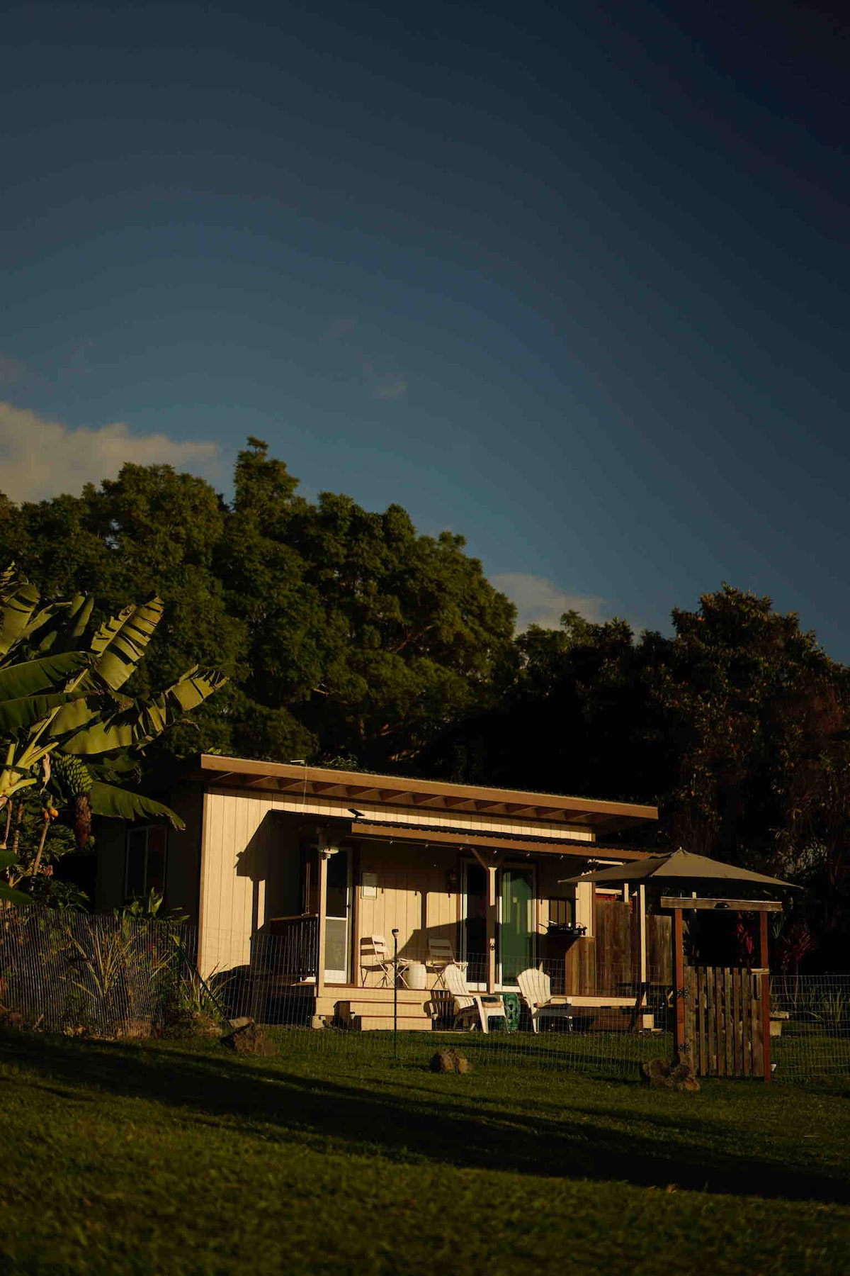 Escape to a private, 2BR retreat on 3 lush acres in Holualoa—where hotel-style efficiency meets island charm.Step onto the lanai for sweeping ocean views, stunning sunsets, and cool mountain breezes.Just 10 minutes to Kona town, beaches, and the airport.With a full kitchen, BBQ, fire pit table, and modern comforts, it’s perfect for couples seeking a peaceful and private escape with scenic veiws. Grill dinner, unwind by the fire pit, or roll out a yoga mat and greet the day in serene surroundings