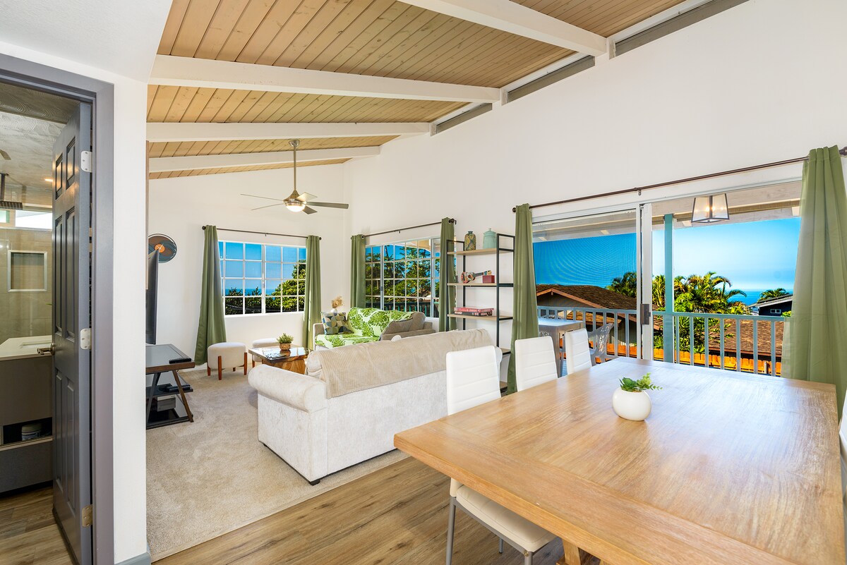 Escape to a private, 2BR retreat on 3 lush acres in Holualoa—where hotel-style efficiency meets island charm.Step onto the lanai for sweeping ocean views, stunning sunsets, and cool mountain breezes.Just 10 minutes to Kona town, beaches, and the airport.With a full kitchen, BBQ, fire pit table, and modern comforts, it’s perfect for couples seeking a peaceful and private escape with scenic veiws. Grill dinner, unwind by the fire pit, or roll out a yoga mat and greet the day in serene surroundings