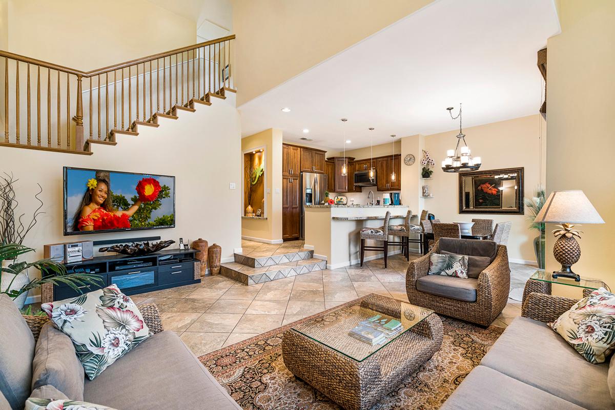 Situated on the beautiful Kohala Coast in the heart of the luxurious, world renown Mauna Lani Resort, we welcome you to our 2 story Beach Villa. Poised alongside the 4th fairway, this luxuriously furnished three bedroom, three bath home provides an excellent view of the golf course and scenic mountains. This home is 2,321 sq feet and features many amenities including the use of a huge, lagoon style pool with hot tub, workout room, high speed internet. Includes access to the PRIVATE BEACH CLUB.