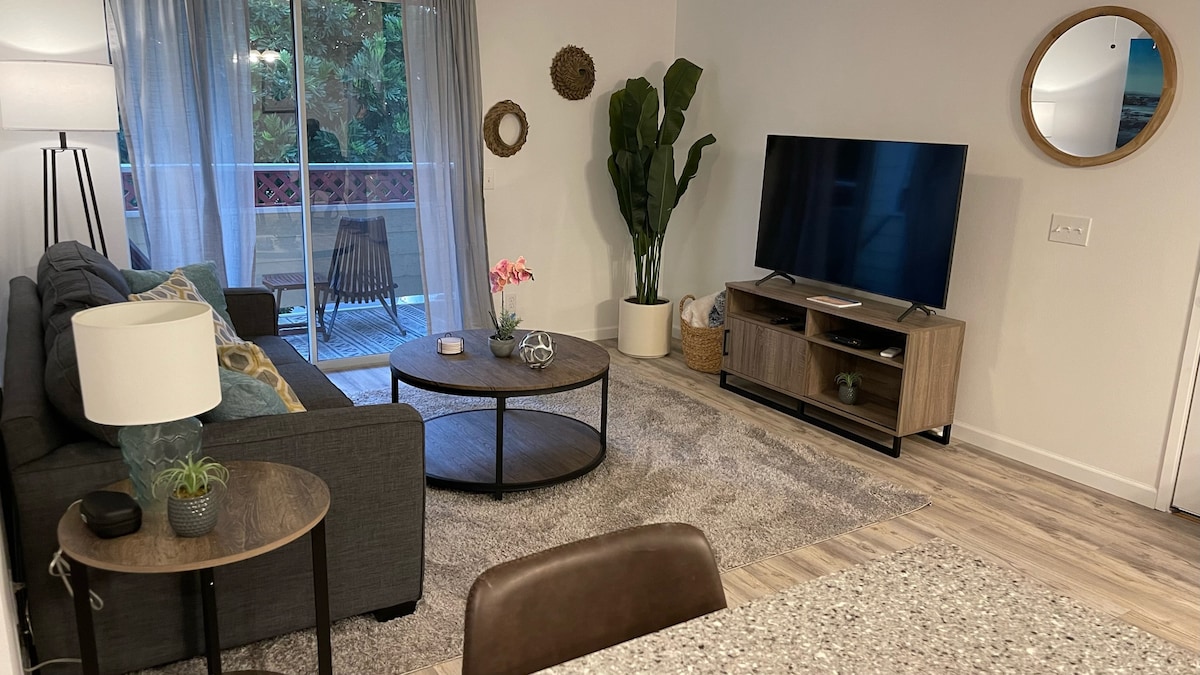 Enjoy your stay at this serene ground floor, remodeled in 2023, 1 bedroom 1 bath corner unit condominium in one of the best location of Waikoloa Beach Resort. * Lush tropical landscaping with ponds and waterfalls * Next to pool, tennis court, BBQ and fitness center * Walk to beach, shops, restaurants, entertainments and Grand Hilton * Free fast WiFi. Central A/C. Washer and dryer. * Spectrum Cable and Roku streaming TVs * Private Parking spot 50 yards from the front door