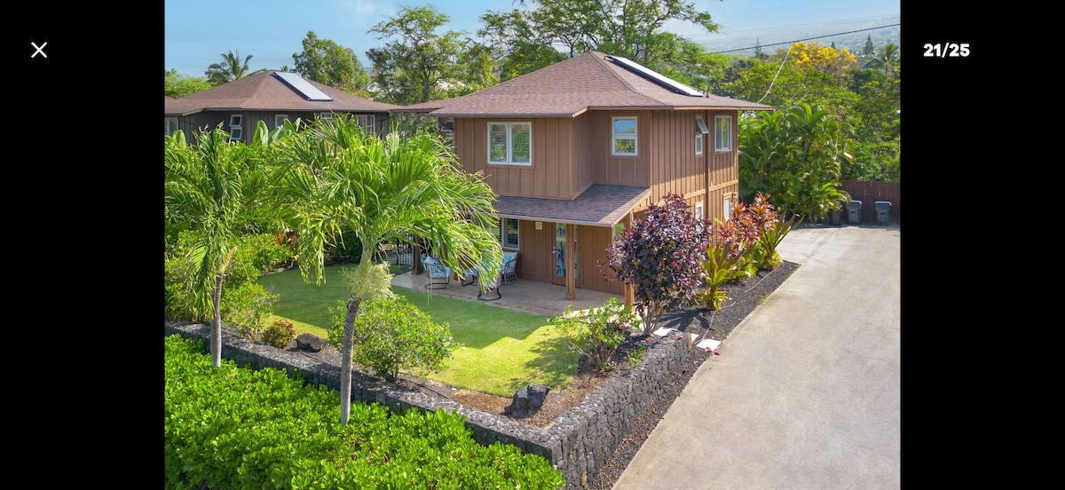 2300 sq.ft home on over an acre is perfect for time with family & friends. 10 minutes from downtown Kona, in Holualoa, with organic coffee, fruit trees, and flowers. There is a roof-top games with ping-pong room overlooking the garden. Paddle boards, snorkeling gear, basketball, and lots of games are also provided. Entertaining is easy on the huge lanai with bbq and a kitchen equipped with cooking staples and equipment. Home is on-property hosted.