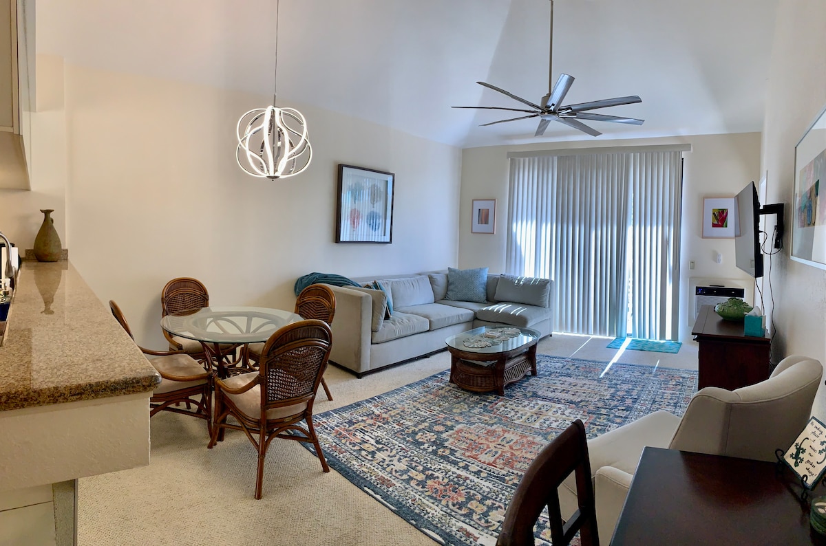 Very comfortable end unit 1 bedroom condo 2 bathrooms (818 sq ft) with views of the pool, partial ocean view, remodeled kitchen and bathrooms, recently painted, new flooring in living room and conveniently located to everything you need, unit is airy and bright with extra windows. The kitchen is well stocked with all the essentials and cooking utensils. A 5 mins walk to the beach and 10-15 mins leisurely stroll to nearby shops and stores. I take my own photos for my unit.