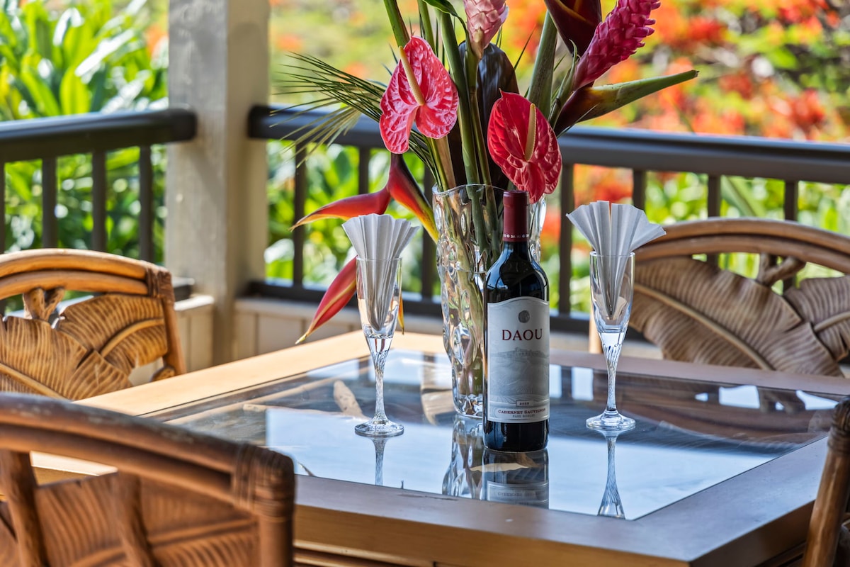 Step into your own private tropical oasis in this fabulous Wailea condo! This adorable 792 square foot, ground floor unit is walking distance to one of the most incredible beaches on Maui with tantalizing turquoise blue waters of the Pacific! This lavish condo boasts an open and airy living space you will love with AC throughout. Relax on the remarkable lanais with a table with seating for four.