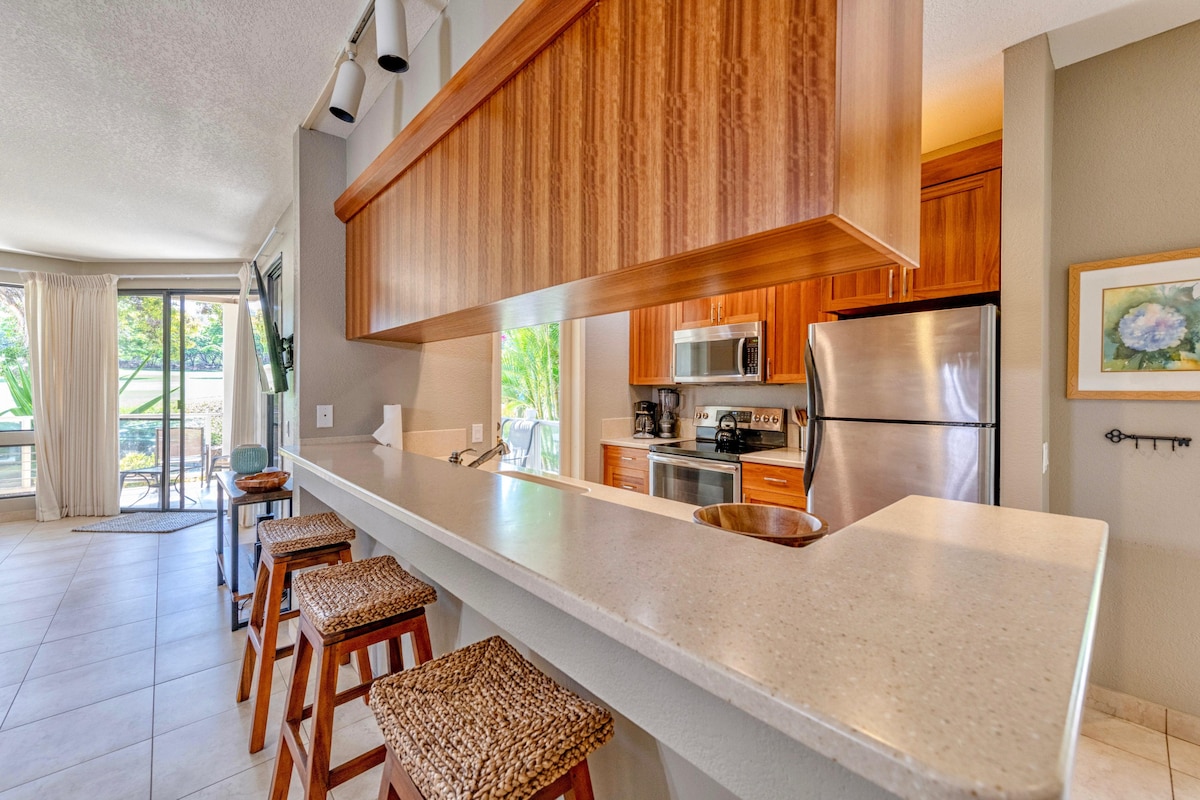 Ekahi Ocean Studio is perfectly located in the lower village of Wailea Ekahi (ground floor), a lush-landscaped paradise, just steps from the oceanfront pool and to world-renowned Keawakapu beach. This studio is perfect for couples seeking a peaceful, romantic retreat. You can spend your days lounging at the beach or oceanfront pool, running along the nearby beachfront pathway, exploring nearby Wailea restaurants and resorts or enjoying our cook's kitchen and your private Lanai.